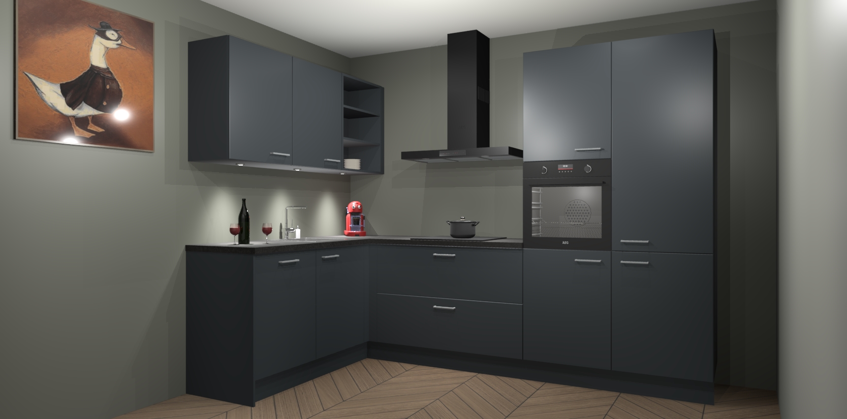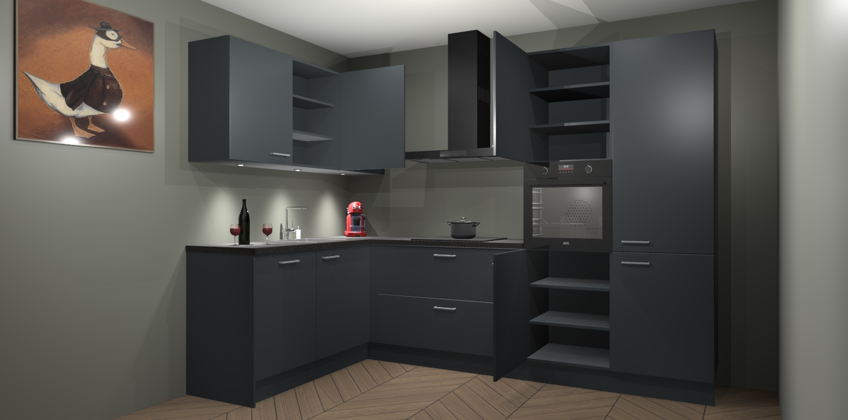 De Onyxgrijze keuken Cognac is een adembenemend ontwerp met een modern en tijdloos uiterlijk. Deze luxe keuken straalt echt aristocratisch uit, waardoor uw koken plezieriger zal worden! Het prachtige design begint bij de hoekkeuken, wat perfect past bij elk type interieur. Bovendien bevat deze hoogwaardige set vijf inbouwapparaten - van oven tot koelkast - die via bestelling naar AEG geüpgraded kunnen worden!