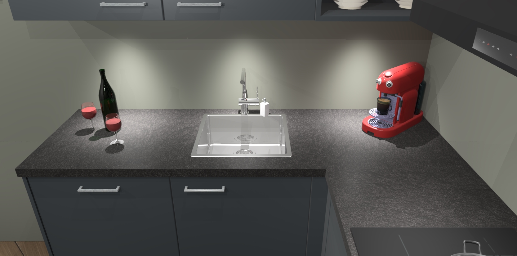 - Bij een hoekwerkblad zijn de hoeken in gevreesd en op maat gemaakt