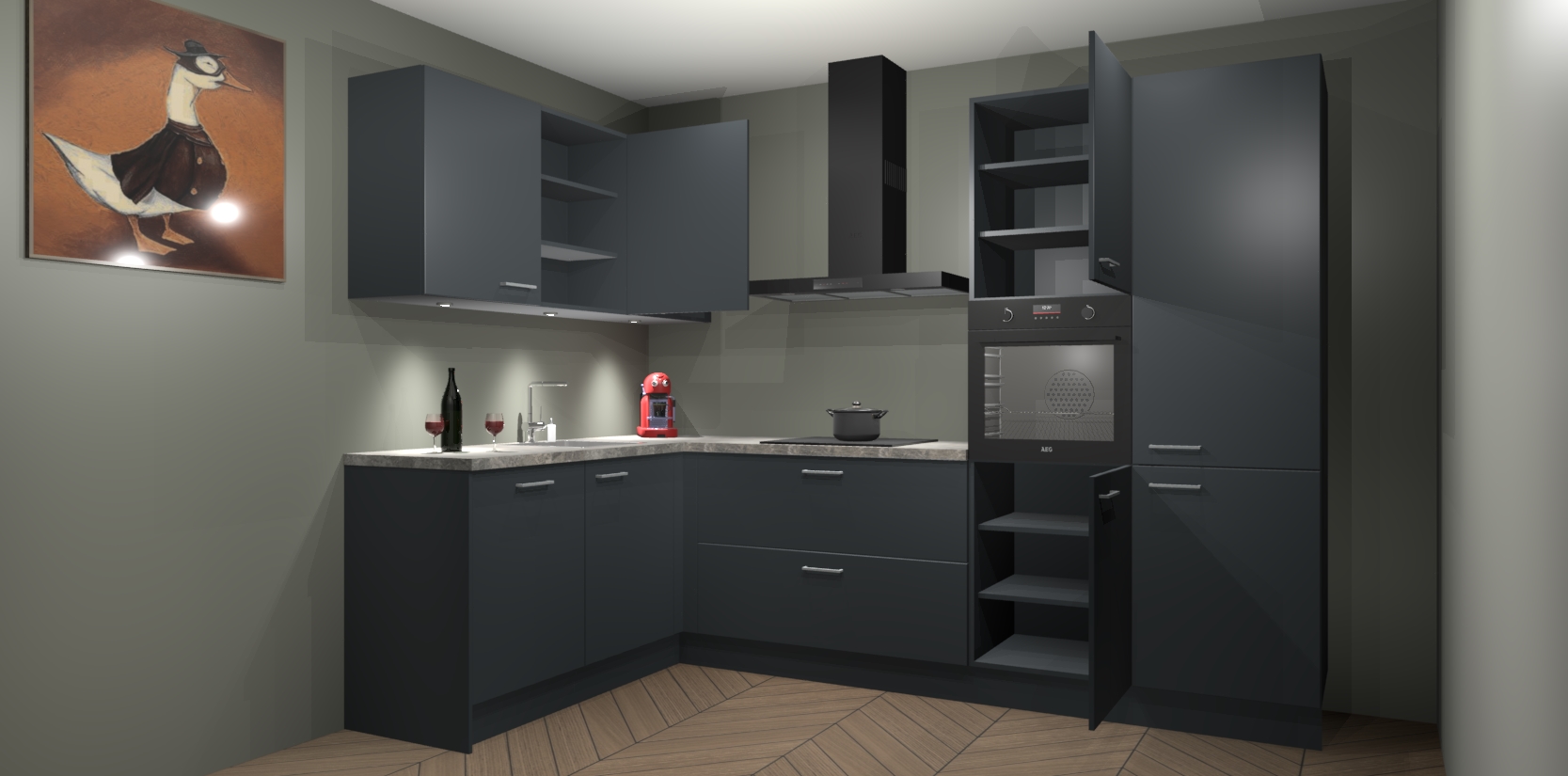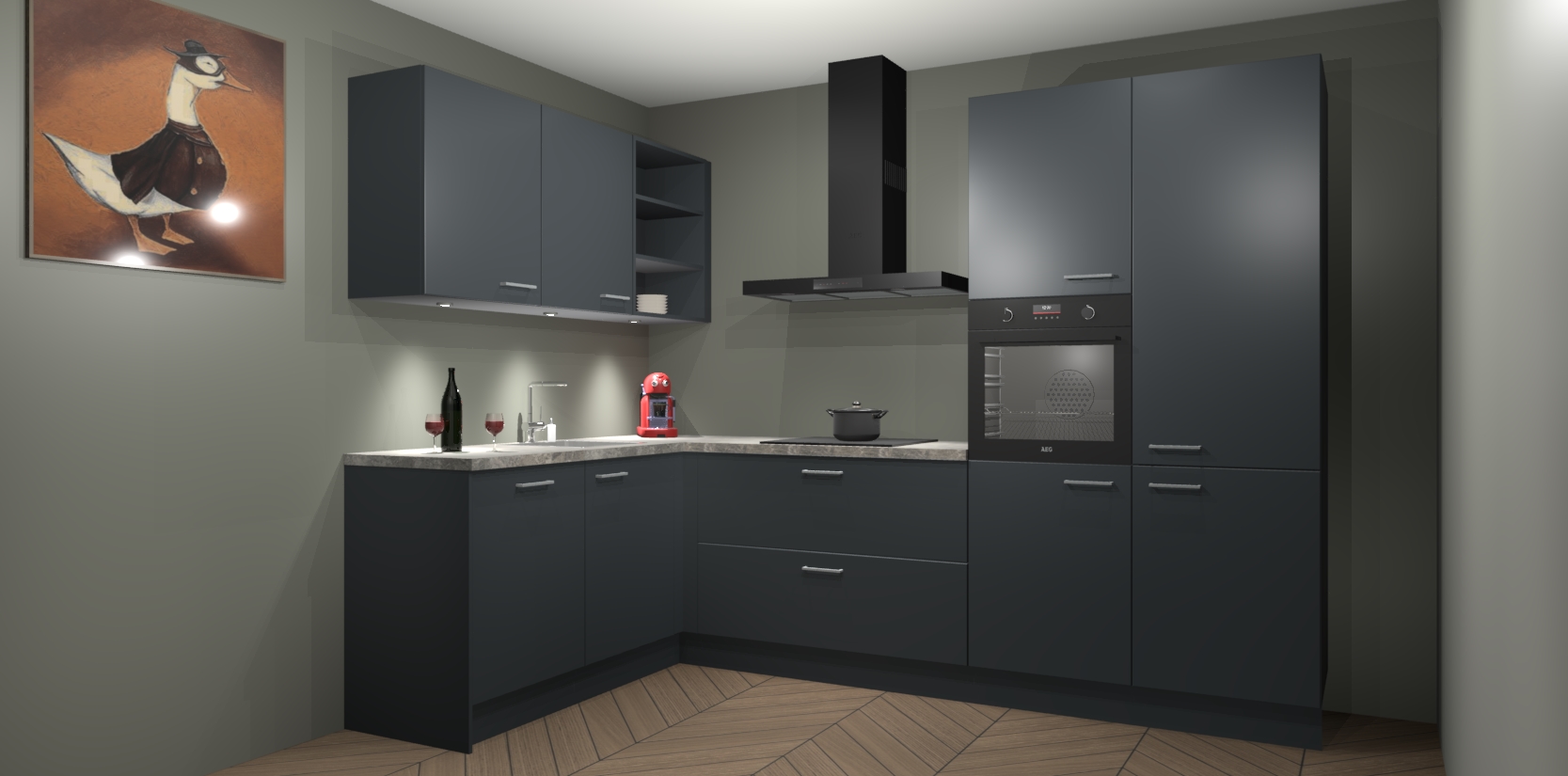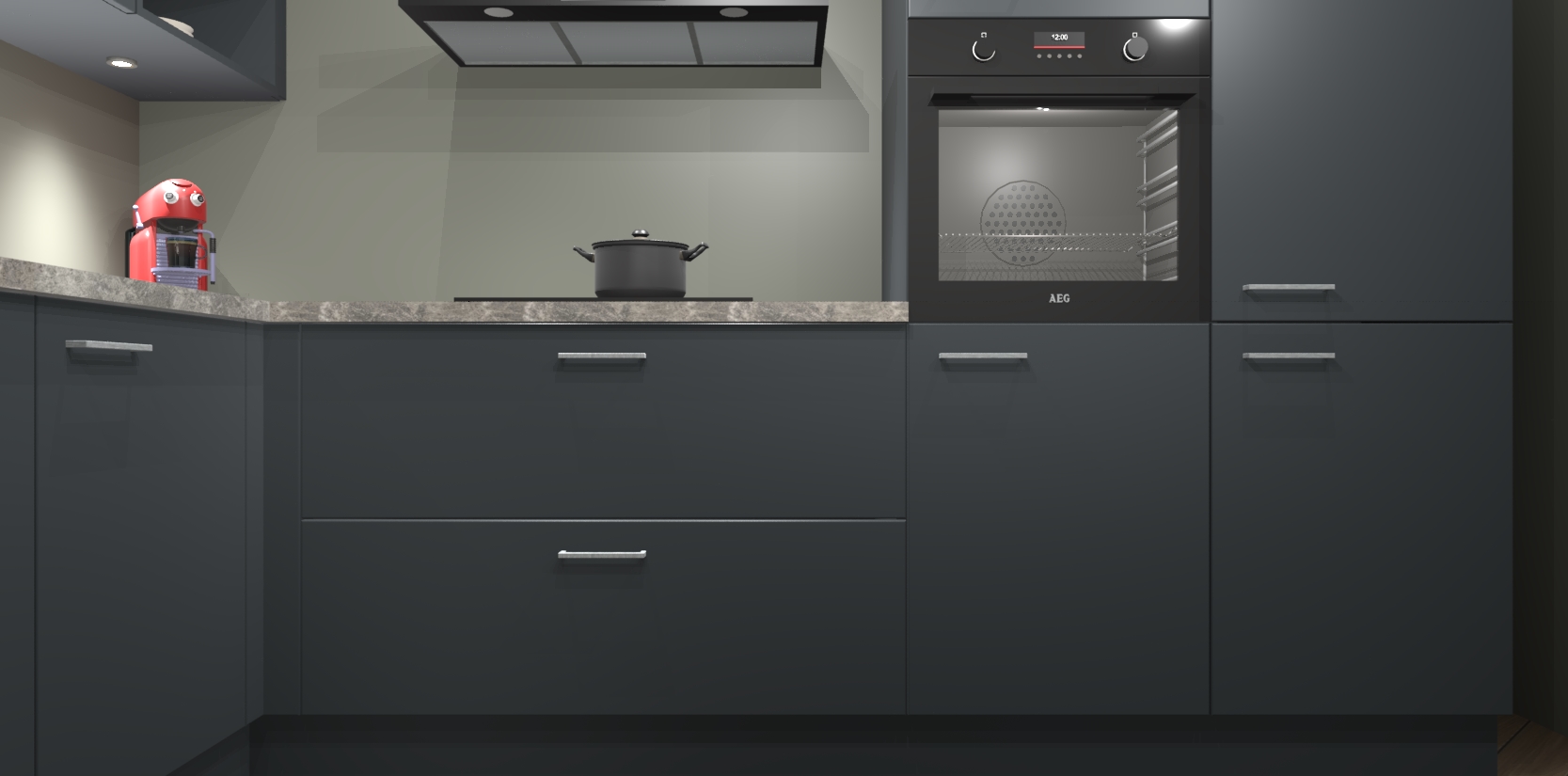De Onyxgrijze keuken Cognac is een adembenemend ontwerp met een modern en tijdloos uiterlijk. Deze luxe keuken straalt echt aristocratisch uit, waardoor uw koken plezieriger zal worden! Het prachtige design begint bij de hoekkeuken, wat perfect past bij elk type interieur. Bovendien bevat deze hoogwaardige set vijf inbouwapparaten - van oven tot koelkast - die via bestelling naar AEG geüpgraded kunnen worden!