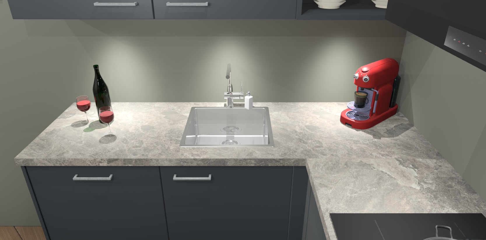 - Bij een hoekwerkblad zijn de hoeken in gevreesd en op maat gemaakt