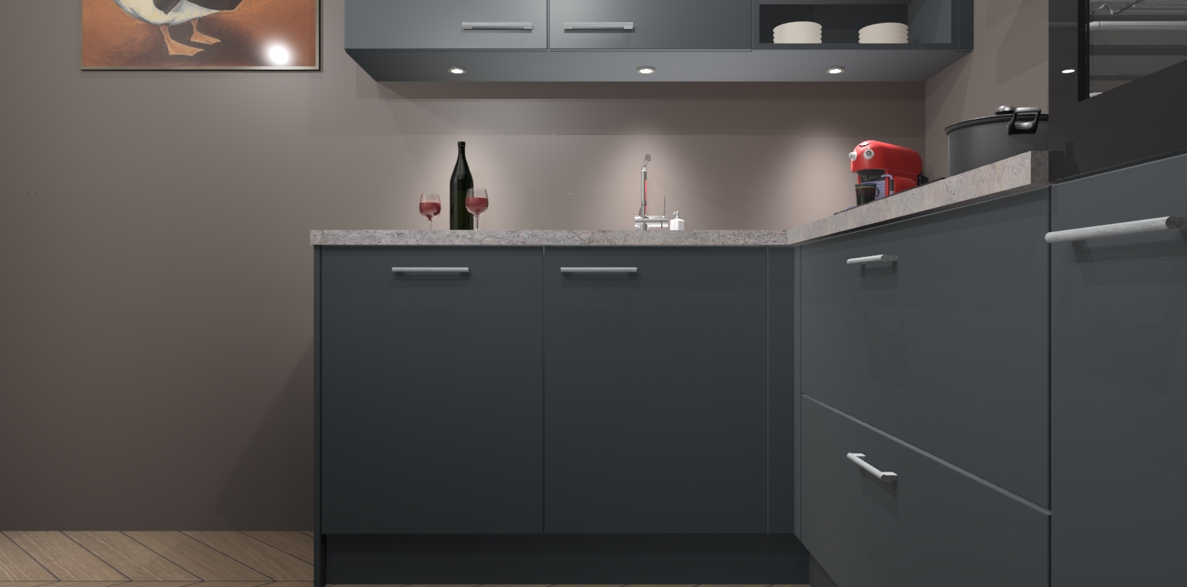 De Onyxgrijze keuken Cognac gaat alleen maar om de beste keukenervaring. Kies gewoon de beste apparatuur en ongeëvenaarde Duitse constructie die u thuis wilt hebben en verander uw huiskamer hartelijkheid meteen in professionaliteit. Laat de toon weten dat u gemakkelijk kan genieten van alle luxe die u verdiend? Bestel nu de Onyxgrijze keuken Cognac voor bij u thuis!