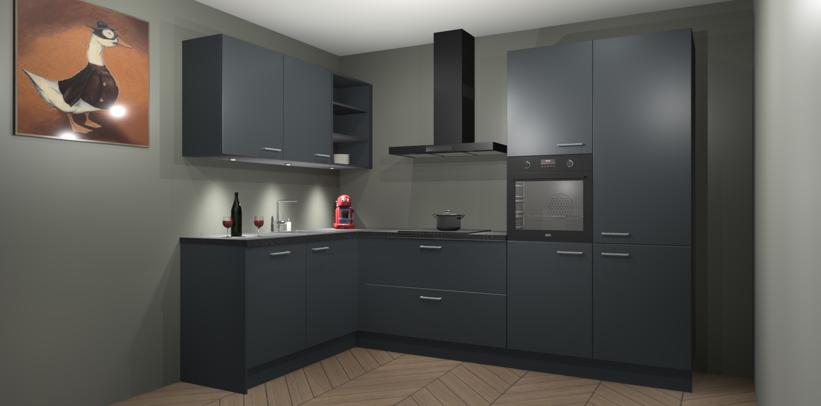 De Onyxgrijze keuken Cognac is een adembenemend ontwerp met een modern en tijdloos uiterlijk. Deze luxe keuken straalt echt aristocratisch uit, waardoor uw koken plezieriger zal worden! Het prachtige design begint bij de hoekkeuken, wat perfect past bij elk type interieur. Bovendien bevat deze hoogwaardige set vijf inbouwapparaten - van oven tot koelkast - die via bestelling naar AEG geüpgraded kunnen worden!