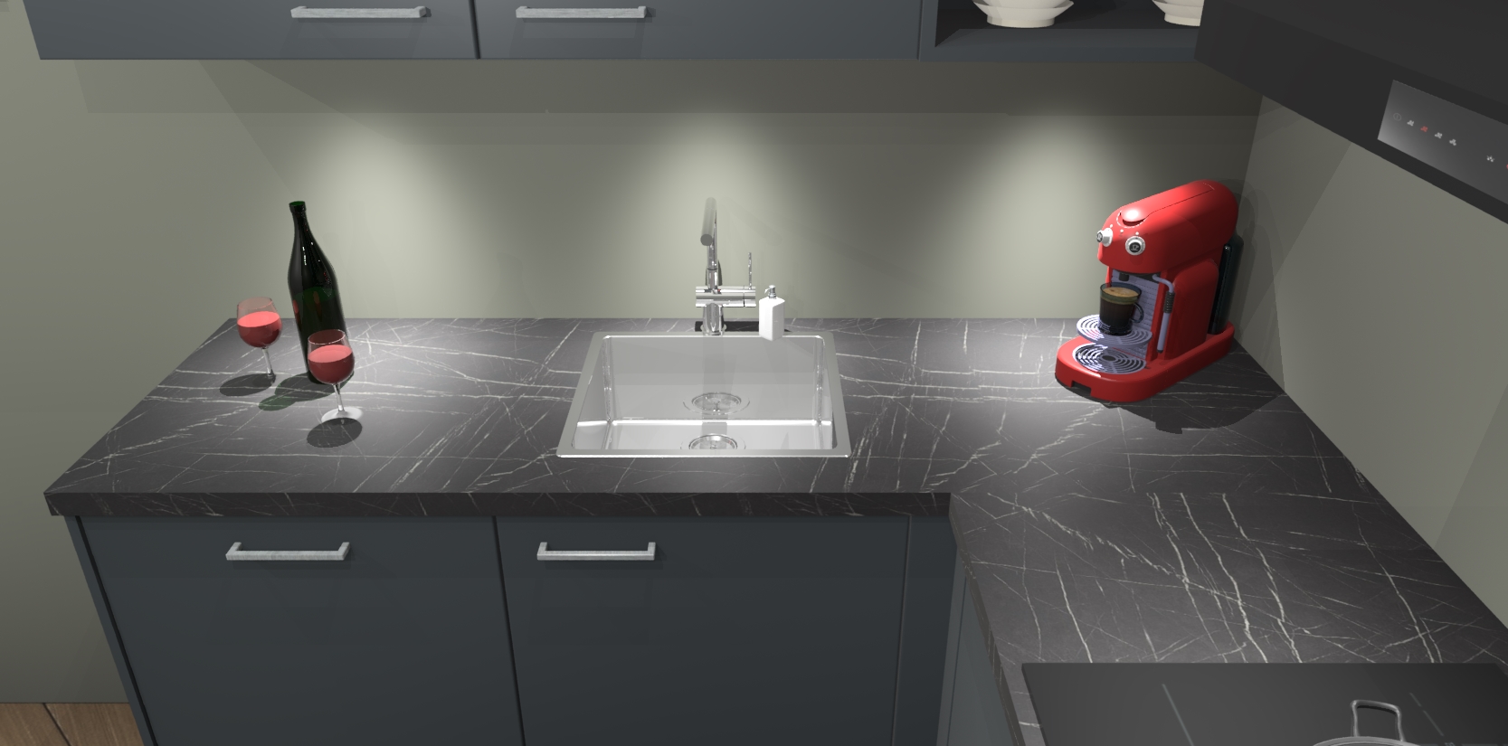 • Bij een hoekwerkblad zijn de hoeken in gevreesd en op maat gemaakt