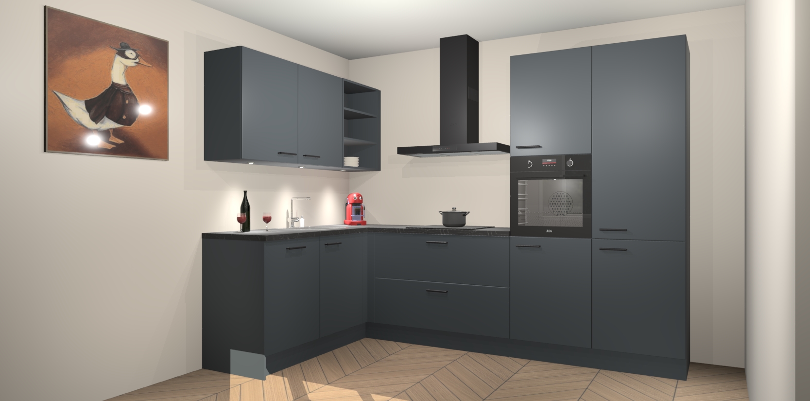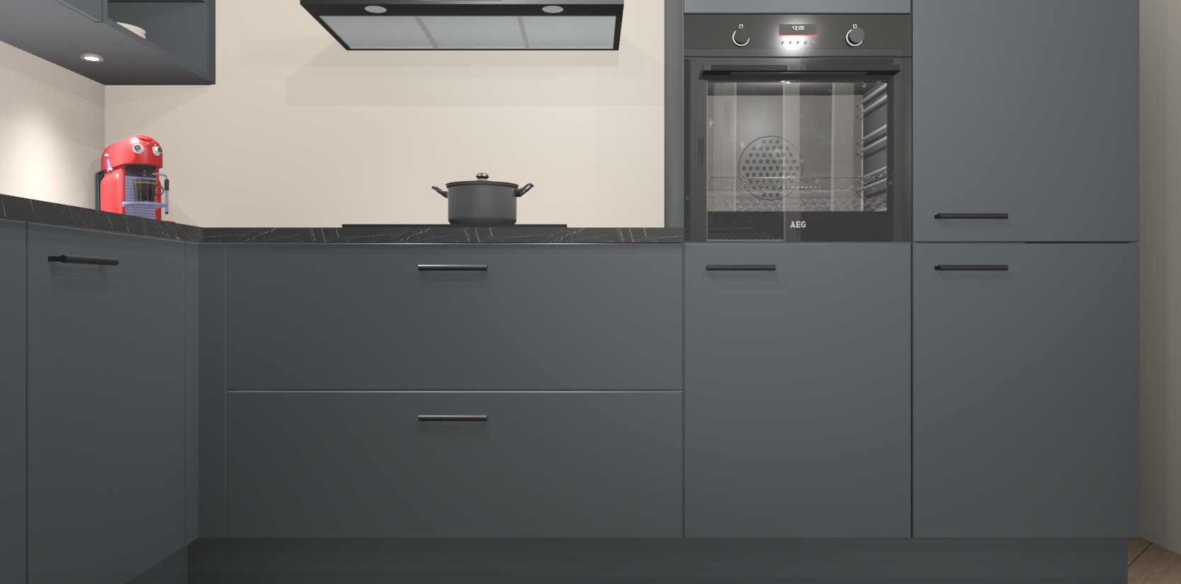 De Onyxgrijze keuken Cognac is een adembenemend ontwerp met een modern en tijdloos uiterlijk. Deze luxe keuken straalt echt aristocratisch uit, waardoor uw koken plezieriger zal worden! Het prachtige design begint bij de hoekkeuken, wat perfect past bij elk type interieur. Bovendien bevat deze hoogwaardige set vijf inbouwapparaten - van oven tot koelkast - die via bestelling naar AEG geüpgraded kunnen worden!