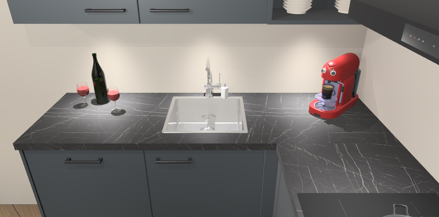 - Bij een hoekwerkblad zijn de hoeken in gevreesd en op maat gemaakt