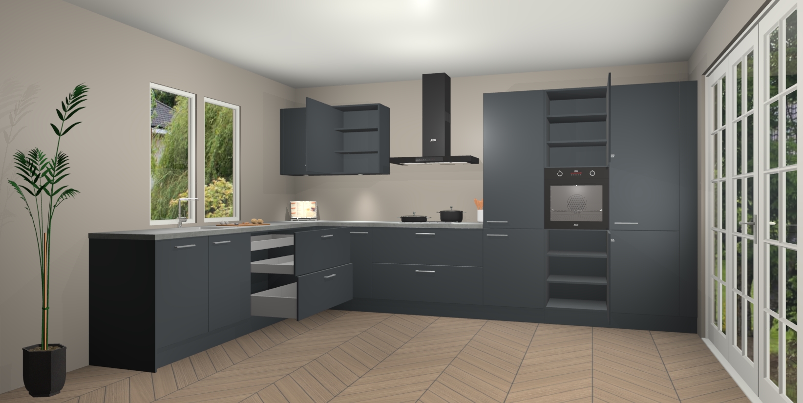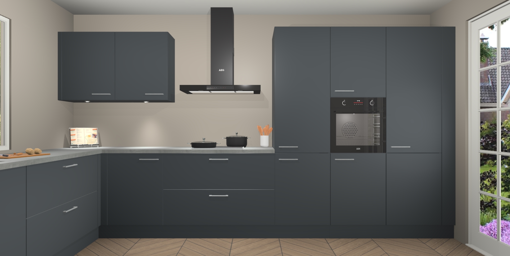 Heeft u nog apparatuur nodig? Geen probleem: de Onyxgrijze keuken Debrecen bevat vijf ingebouwde apparaten - een oven, inductiekookplaat, afzuigkap, vaatwasser en koelkast - die gemakkelijk kunnen worden bijgewerkt naar AEG na bestelling. En als dat nog niet genoeg is; onze kasten worden pre-geassembleerd geleverd en zijn verkrijgbaar tegen een vastgeroeste lage prijs! U hoeft nooit meer te zoeken naar goede kwaliteit en service want onze producten hebben echt Duitse kwaliteit.