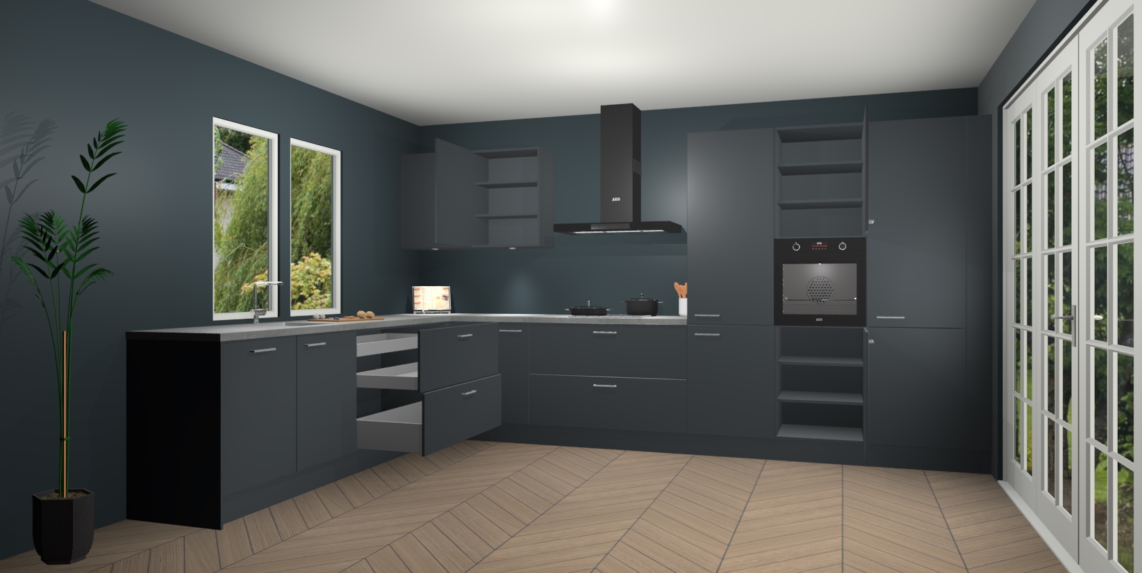 Heeft u nog apparatuur nodig? Geen probleem: de Onyxgrijze keuken Debrecen bevat vijf ingebouwde apparaten - een oven, inductiekookplaat, afzuigkap, vaatwasser en koelkast - die gemakkelijk kunnen worden bijgewerkt naar AEG na bestelling. En als dat nog niet genoeg is; onze kasten worden pre-geassembleerd geleverd en zijn verkrijgbaar tegen een vastgeroeste lage prijs! U hoeft nooit meer te zoeken naar goede kwaliteit en service want onze producten hebben echt Duitse kwaliteit.