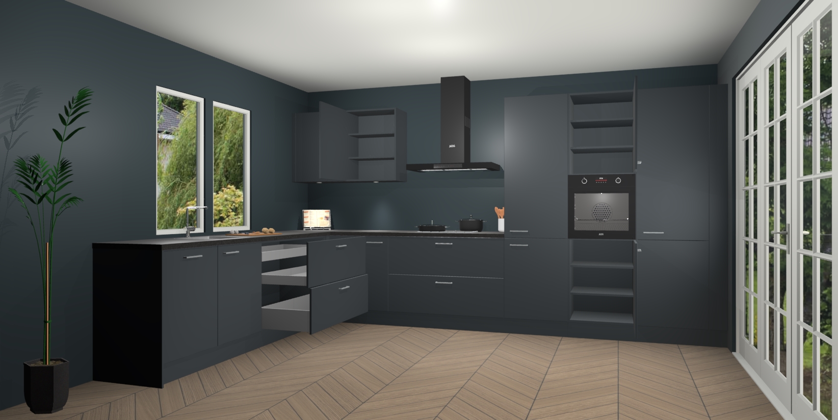 Heeft u nog apparatuur nodig? Geen probleem: de Onyxgrijze keuken Debrecen bevat vijf ingebouwde apparaten - een oven, inductiekookplaat, afzuigkap, vaatwasser en koelkast - die gemakkelijk kunnen worden bijgewerkt naar AEG na bestelling. En als dat nog niet genoeg is; onze kasten worden pre-geassembleerd geleverd en zijn verkrijgbaar tegen een vastgeroeste lage prijs! U hoeft nooit meer te zoeken naar goede kwaliteit en service want onze producten hebben echt Duitse kwaliteit.