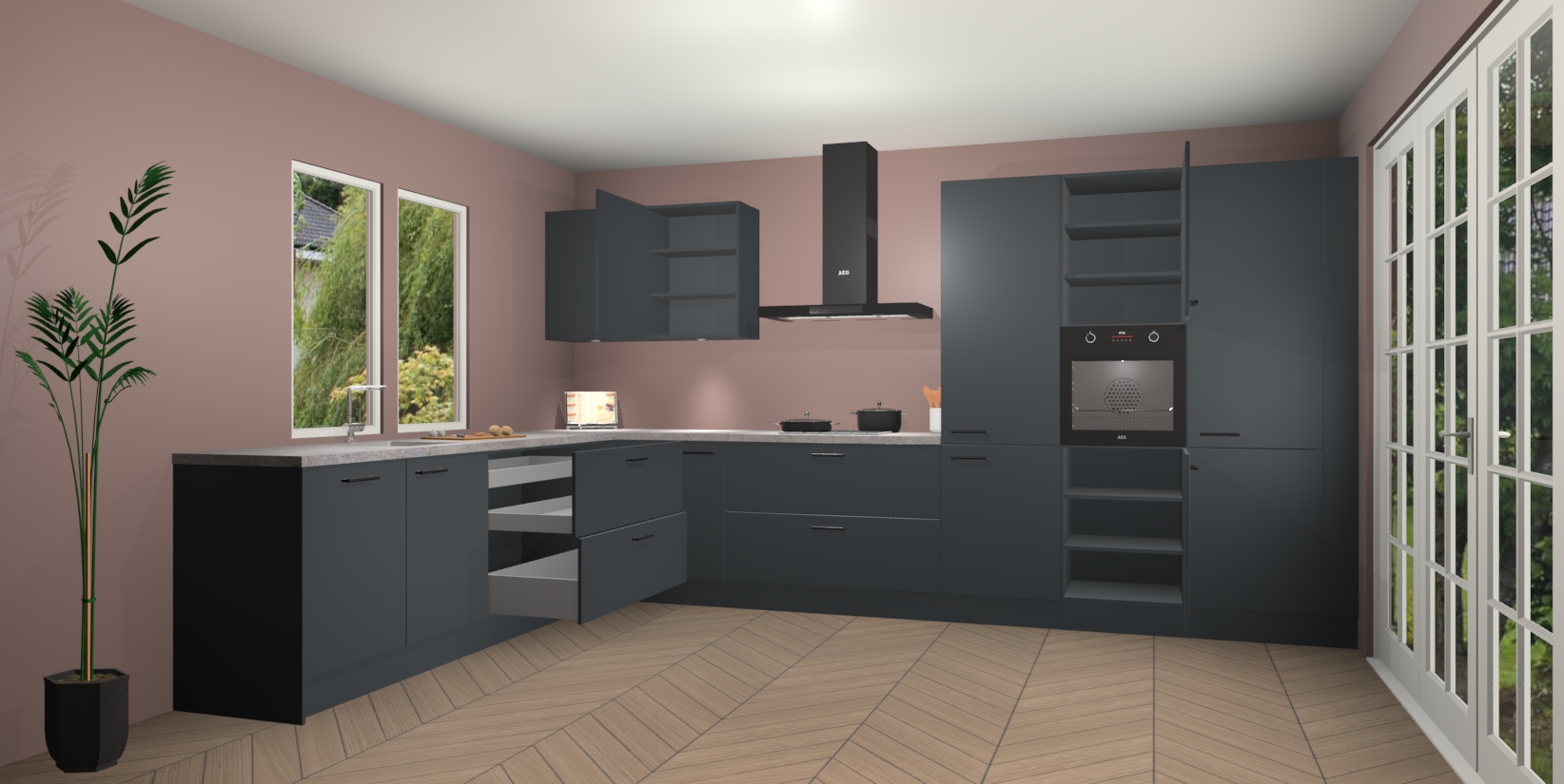 Kom dichtbij de perfecte keuken van uw dromen met de Onyxgrijze keuken Debrecen. Met een prachtige houtlook en eigentijds ontwerp, straalt deze keuken warmte en sfeer uit. Of u nu liefhebber bent van traditionele of moderne stijlen, er is genoeg ruimte om aan al uw behoeften te voldoen.