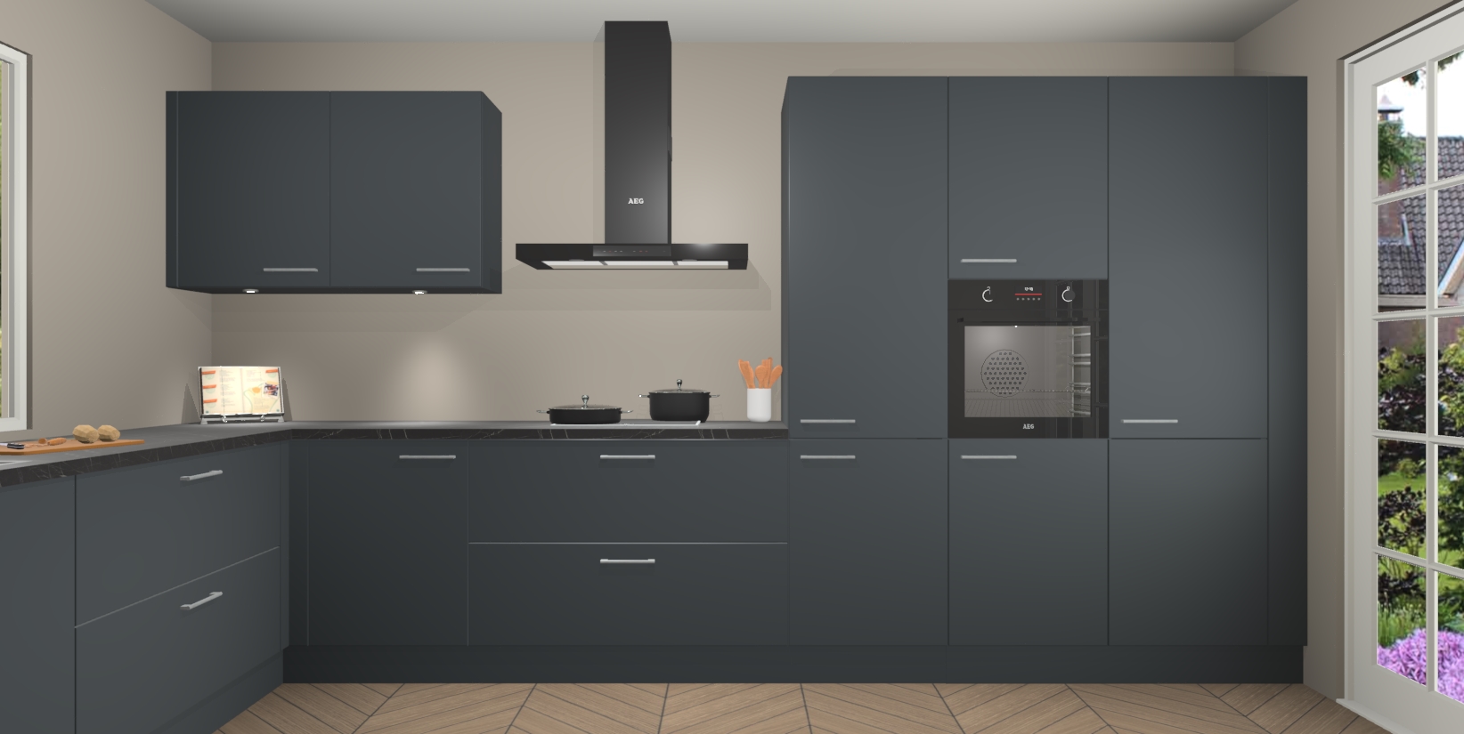 Heeft u nog apparatuur nodig? Geen probleem: de Onyxgrijze keuken Debrecen bevat vijf ingebouwde apparaten - een oven, inductiekookplaat, afzuigkap, vaatwasser en koelkast - die gemakkelijk kunnen worden bijgewerkt naar AEG na bestelling. En als dat nog niet genoeg is; onze kasten worden pre-geassembleerd geleverd en zijn verkrijgbaar tegen een vastgeroeste lage prijs! U hoeft nooit meer te zoeken naar goede kwaliteit en service want onze producten hebben echt Duitse kwaliteit.