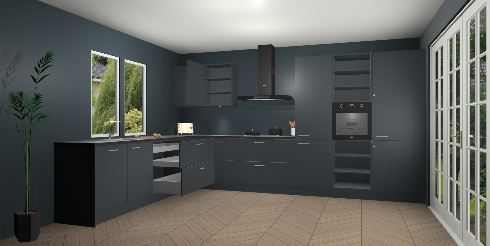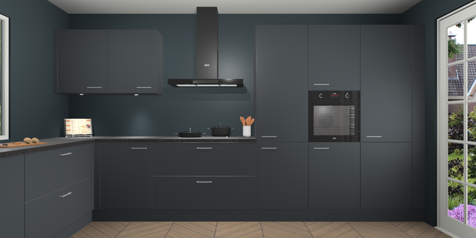 Heeft u nog apparatuur nodig? Geen probleem: de Onyxgrijze keuken Debrecen bevat vijf ingebouwde apparaten - een oven, inductiekookplaat, afzuigkap, vaatwasser en koelkast - die gemakkelijk kunnen worden bijgewerkt naar AEG na bestelling. En als dat nog niet genoeg is; onze kasten worden pre-geassembleerd geleverd en zijn verkrijgbaar tegen een vastgeroeste lage prijs! U hoeft nooit meer te zoeken naar goede kwaliteit en service want onze producten hebben echt Duitse kwaliteit.