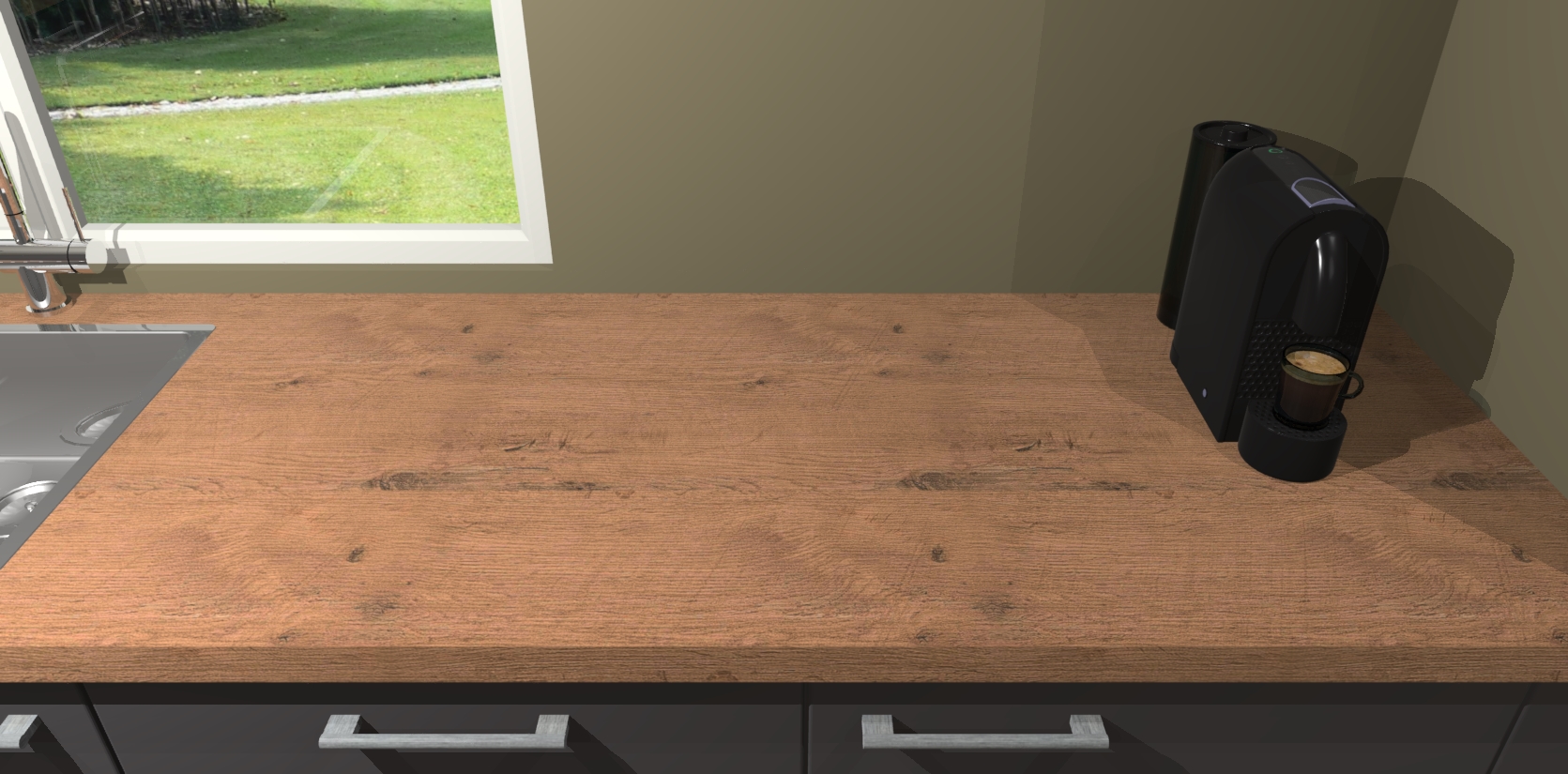- Bij een hoekwerkblad zijn de hoeken in gevreesd en op maat gemaakt