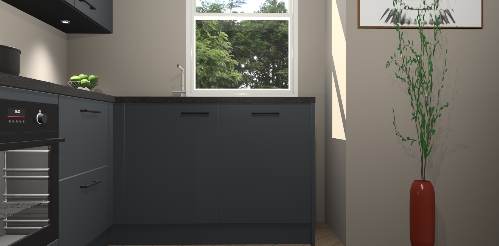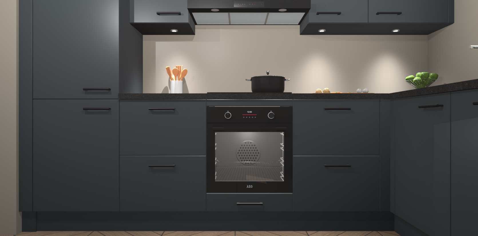 De onyxgrijze keuken Geneve is uitgerust met 5 inbouwapparaten - een oven, inductiekookplaat, afzuigkap, vaatwasser en koelkast - voor al uw kook- en bewaarbehoeftes. U kunt deze apparaten desgewenst eenvoudig upgraden naar AEG of de oven omruilen voor een combimagnetron na het plaatsen van uw bestelling. En met de soft close deuren, voldoende opbergruimte en kasten die voorgemonteerd worden geleverd, bent u in een mum van tijd klaar om heerlijke maaltijden te bereiden!