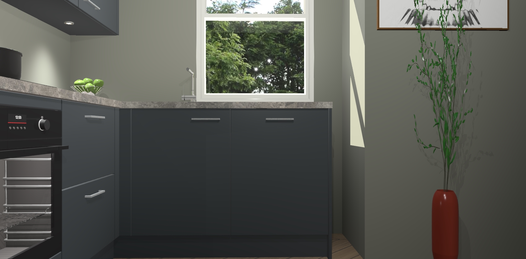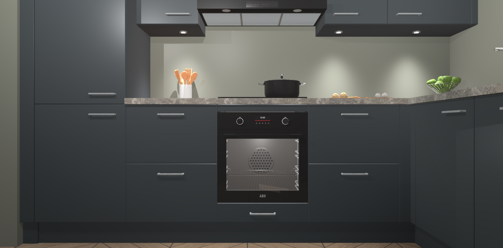 De onyxgrijze keuken Geneve is uitgerust met 5 inbouwapparaten - een oven, inductiekookplaat, afzuigkap, vaatwasser en koelkast - voor al uw kook- en bewaarbehoeftes. U kunt deze apparaten desgewenst eenvoudig upgraden naar AEG of de oven omruilen voor een combimagnetron na het plaatsen van uw bestelling. En met de soft close deuren, voldoende opbergruimte en kasten die voorgemonteerd worden geleverd, bent u in een mum van tijd klaar om heerlijke maaltijden te bereiden!