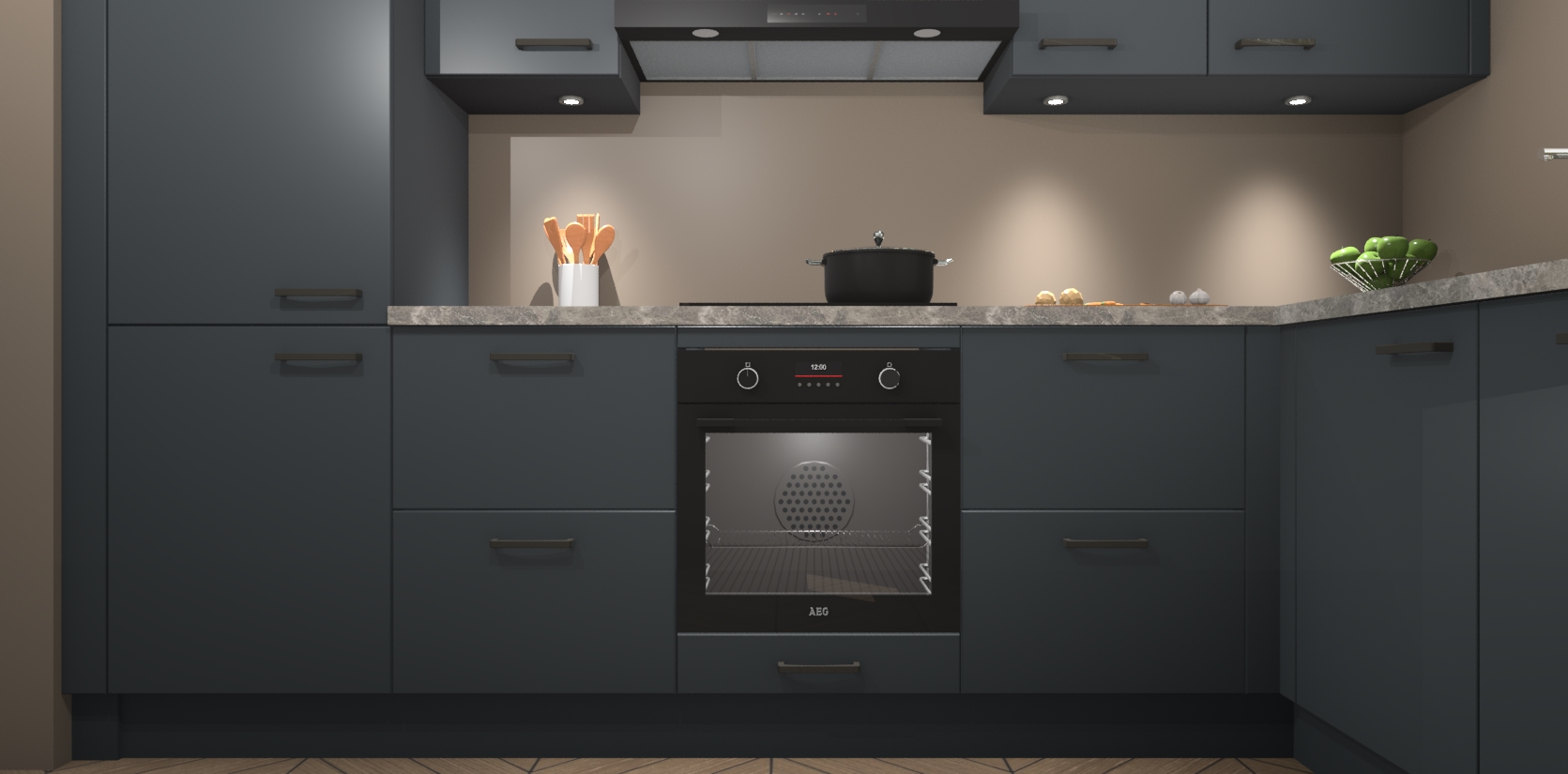 De onyxgrijze keuken Geneve is uitgerust met 5 inbouwapparaten - een oven, inductiekookplaat, afzuigkap, vaatwasser en koelkast - voor al uw kook- en bewaarbehoeftes. U kunt deze apparaten desgewenst eenvoudig upgraden naar AEG of de oven omruilen voor een combimagnetron na het plaatsen van uw bestelling. En met de soft close deuren, voldoende opbergruimte en kasten die voorgemonteerd worden geleverd, bent u in een mum van tijd klaar om heerlijke maaltijden te bereiden!
