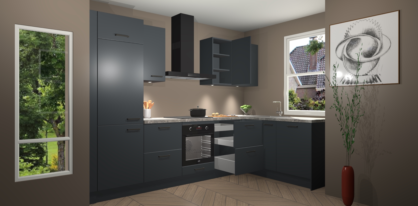 De onyxgrijze keuken Geneve is precies wat u nodig heeft als u op zoek bent naar modern design, versmolten met tijdloze schoonheid. De strakke afwerking voegt klasse toe terwijl het toch een uitnodigende sfeer behoudt; zeker om zowel gasten als uzelf te inspireren om in stijl te gaan koken! En nog beter, het zal uw budget niet breken - dus waarom wachten? Met de onyxgrijze keuken Geneve bent u verzekerd van kwaliteit zonder in te leveren op de prijs!