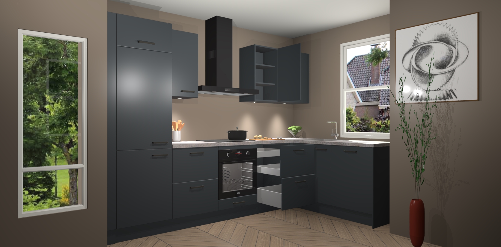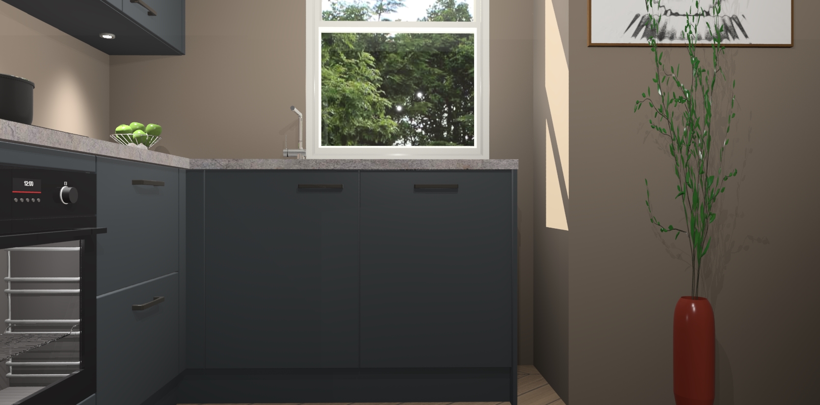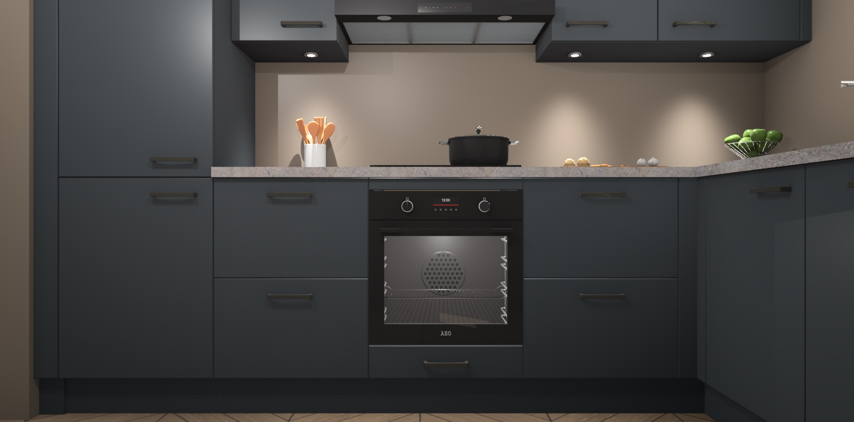 De onyxgrijze keuken Geneve is uitgerust met 5 inbouwapparaten - een oven, inductiekookplaat, afzuigkap, vaatwasser en koelkast - voor al uw kook- en bewaarbehoeftes. U kunt deze apparaten desgewenst eenvoudig upgraden naar AEG of de oven omruilen voor een combimagnetron na het plaatsen van uw bestelling. En met de soft close deuren, voldoende opbergruimte en kasten die voorgemonteerd worden geleverd, bent u in een mum van tijd klaar om heerlijke maaltijden te bereiden!