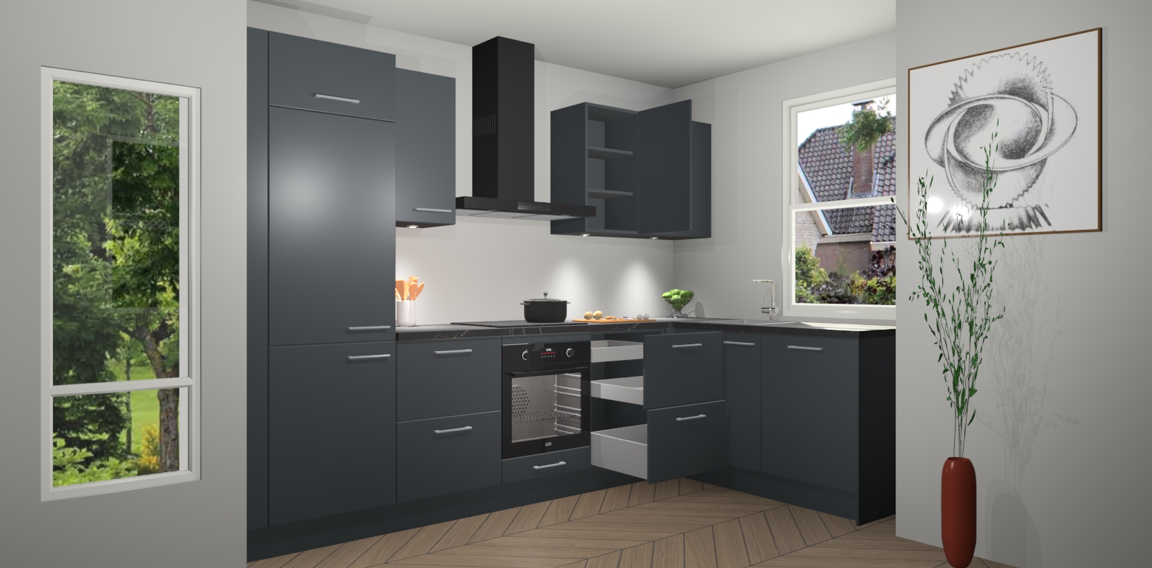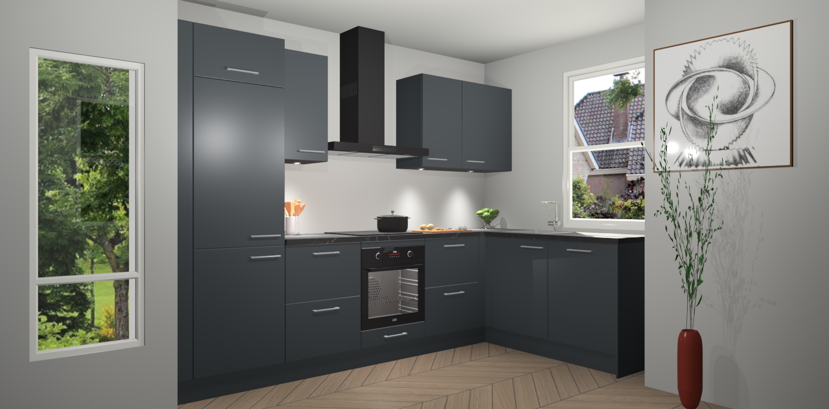 De onyxgrijze keuken Geneve is precies wat u nodig heeft als u op zoek bent naar modern design, versmolten met tijdloze schoonheid. De strakke afwerking voegt klasse toe terwijl het toch een uitnodigende sfeer behoudt; zeker om zowel gasten als uzelf te inspireren om in stijl te gaan koken! En nog beter, het zal uw budget niet breken - dus waarom wachten? Met de onyxgrijze keuken Geneve bent u verzekerd van kwaliteit zonder in te leveren op de prijs!
