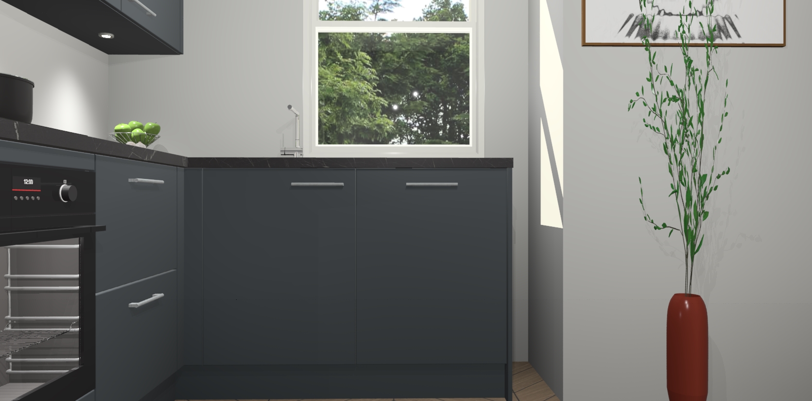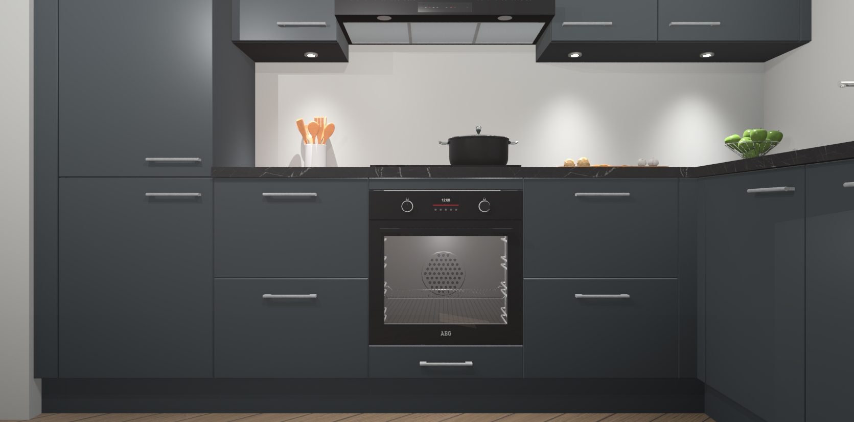 De onyxgrijze keuken Geneve is uitgerust met 5 inbouwapparaten - een oven, inductiekookplaat, afzuigkap, vaatwasser en koelkast - voor al uw kook- en bewaarbehoeftes. U kunt deze apparaten desgewenst eenvoudig upgraden naar AEG of de oven omruilen voor een combimagnetron na het plaatsen van uw bestelling. En met de soft close deuren, voldoende opbergruimte en kasten die voorgemonteerd worden geleverd, bent u in een mum van tijd klaar om heerlijke maaltijden te bereiden!