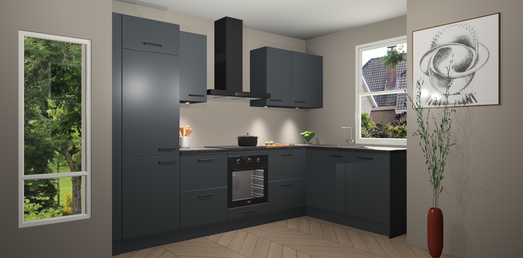 De onyxgrijze keuken Geneve is precies wat u nodig heeft als u op zoek bent naar modern design, versmolten met tijdloze schoonheid. De strakke afwerking voegt klasse toe terwijl het toch een uitnodigende sfeer behoudt; zeker om zowel gasten als uzelf te inspireren om in stijl te gaan koken! En nog beter, het zal uw budget niet breken - dus waarom wachten? Met de onyxgrijze keuken Geneve bent u verzekerd van kwaliteit zonder in te leveren op de prijs!