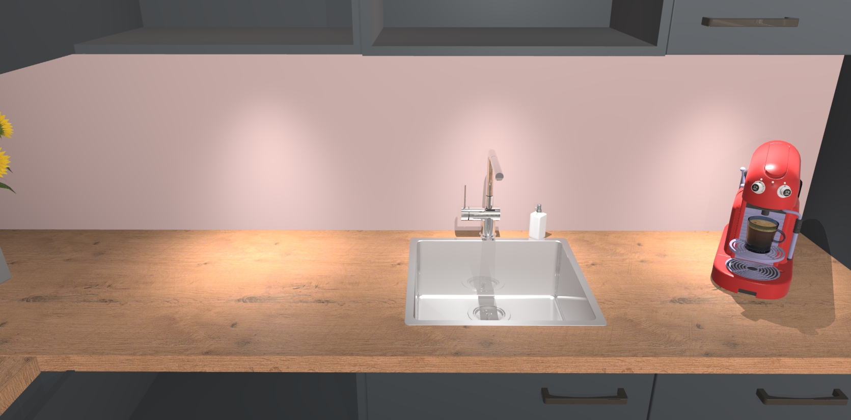 - De spoelbak is nog niet in gevreesd. Dit dient tijdens het werk gedaan te worden