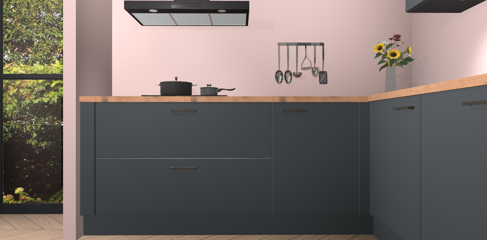 Inclusief plinten, stelpoten en werkblad
