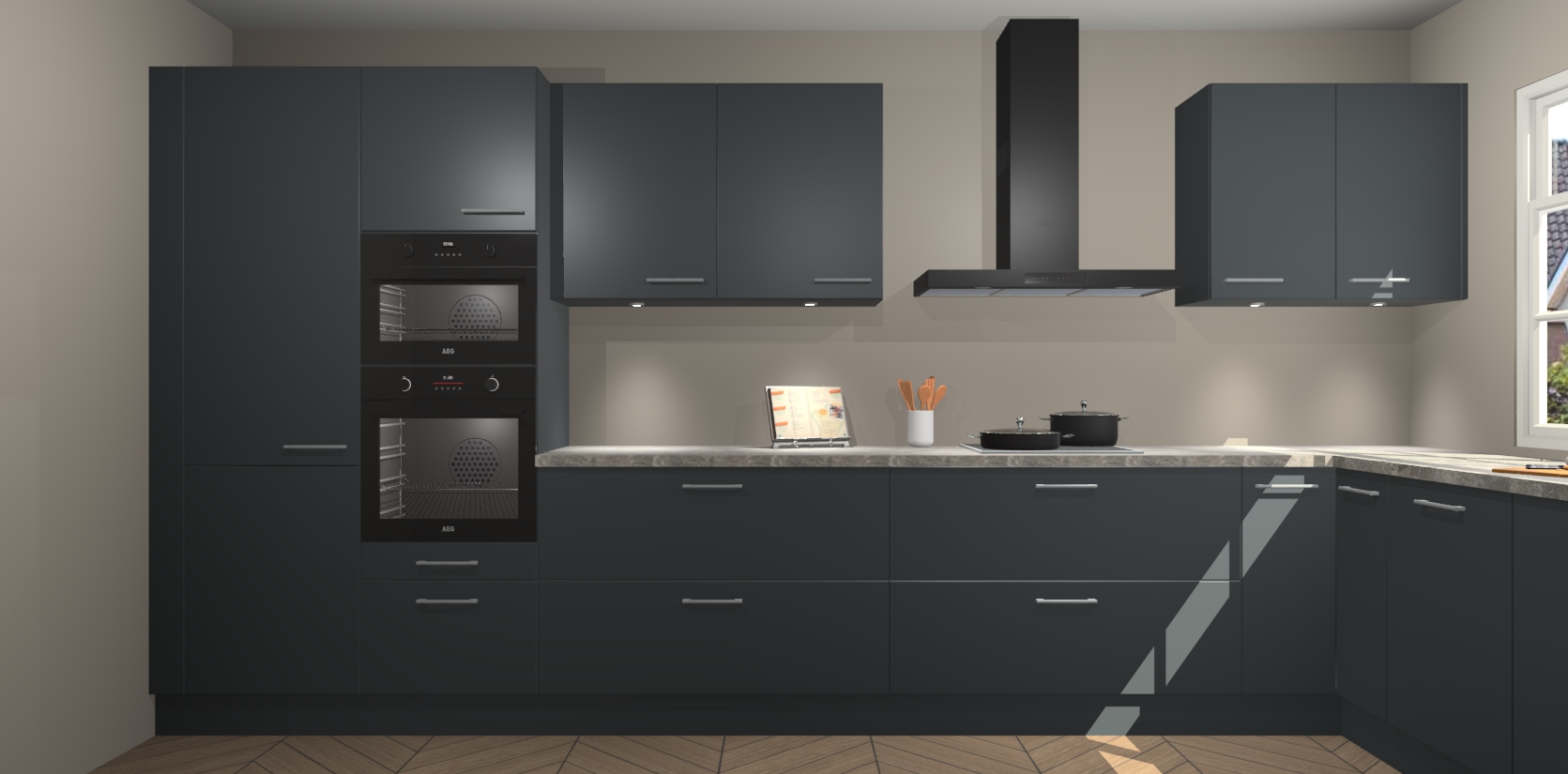 Kom dichtbij de perfecte keuken van uw dromen met de onyxgrijze keuken Graz. Met een prachtige houtlook en eigentijds ontwerp, straalt deze keuken warmte en sfeer uit. Of u nu liefhebber bent van traditionele of moderne stijlen, er is genoeg ruimte om aan al uw behoeften te voldoen.