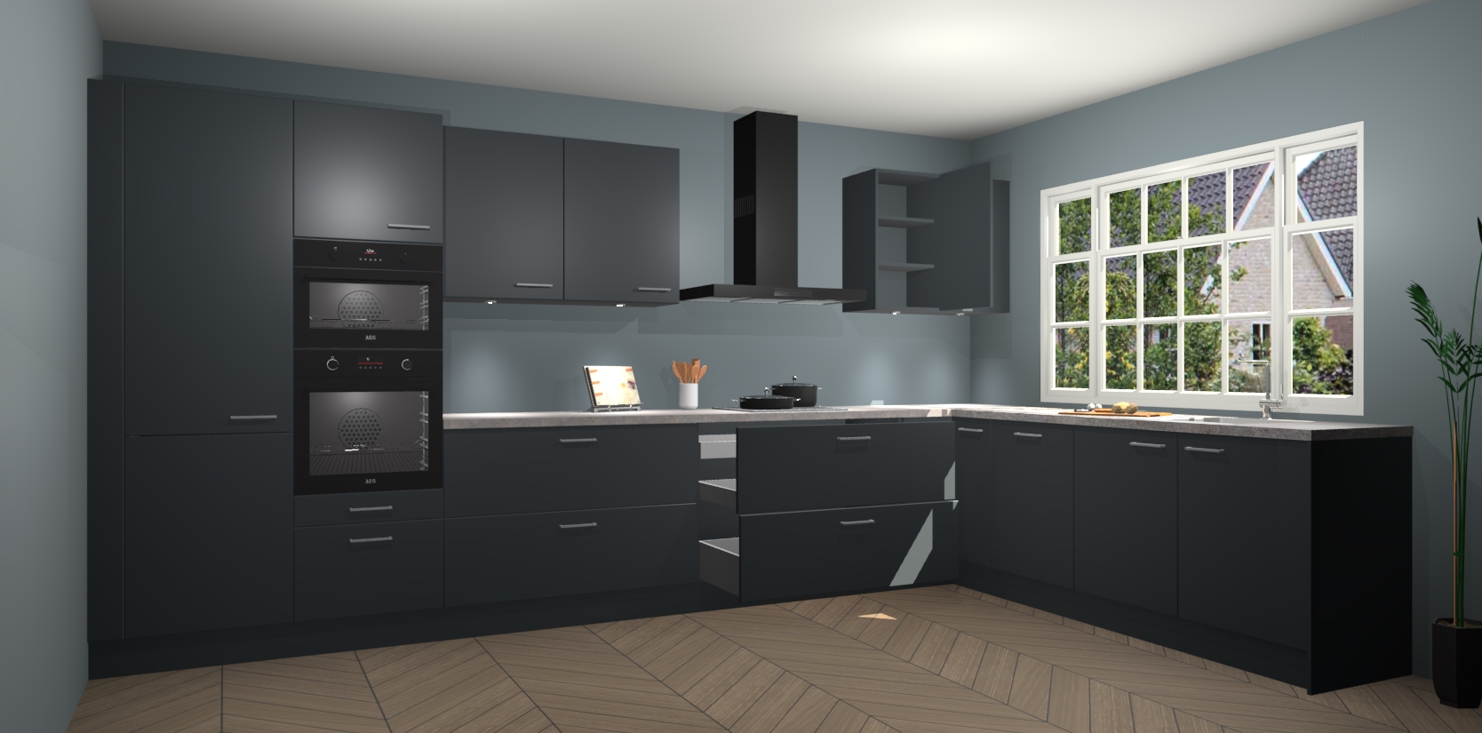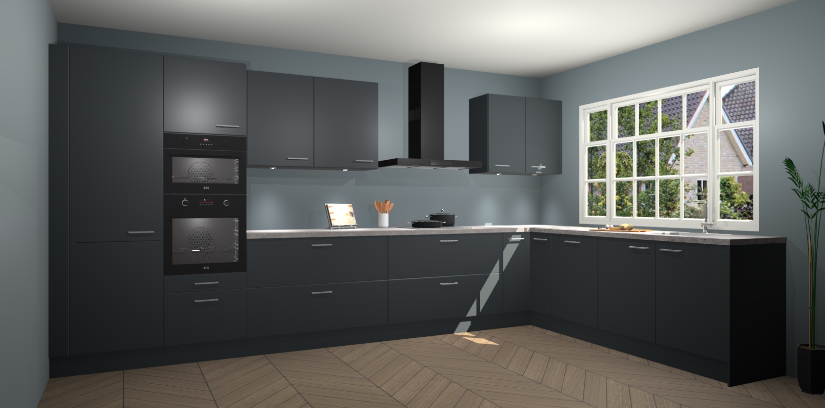 Heeft u nog apparatuur nodig? Geen probleem: de onyxgrijze keuken Graz bevat vijf ingebouwde apparaten - een oven, inductiekookplaat, afzuigkap, vaatwasser en koelkast - die gemakkelijk kunnen worden bijgewerkt naar AEG na bestelling. En als dat nog niet genoeg is; onze kasten worden pre-geassembleerd geleverd en zijn verkrijgbaar tegen een vastgeroeste lage prijs! U hoeft nooit meer te zoeken naar goede kwaliteit en service want onze producten hebben echt Duitse kwaliteit.