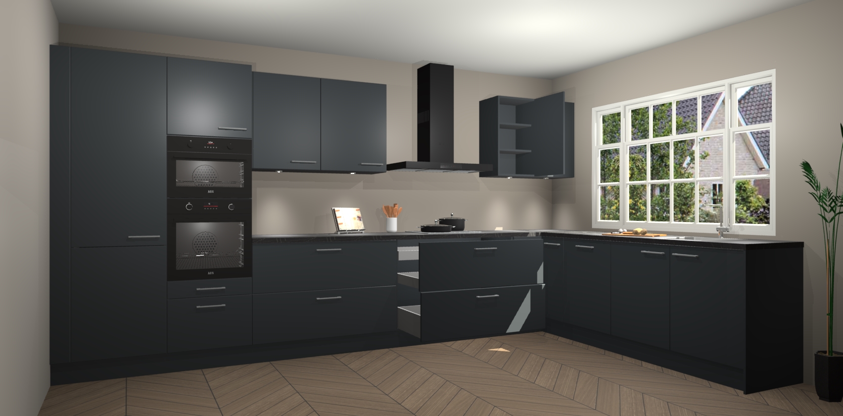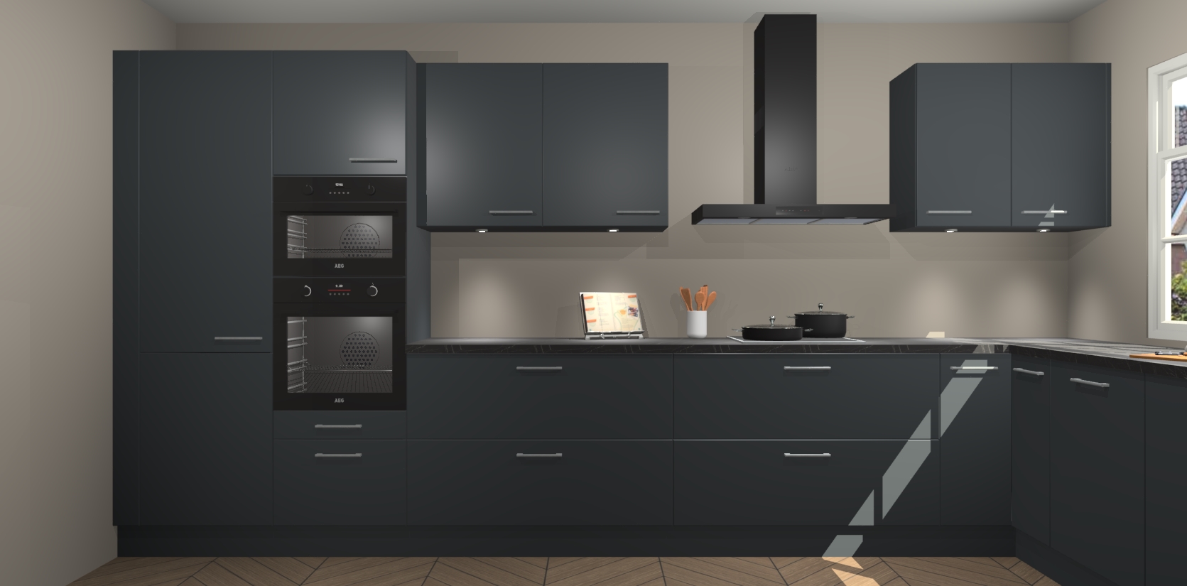 Heeft u nog apparatuur nodig? Geen probleem: de onyxgrijze keuken Graz bevat vijf ingebouwde apparaten - een oven, inductiekookplaat, afzuigkap, vaatwasser en koelkast - die gemakkelijk kunnen worden bijgewerkt naar AEG na bestelling. En als dat nog niet genoeg is; onze kasten worden pre-geassembleerd geleverd en zijn verkrijgbaar tegen een vastgeroeste lage prijs! U hoeft nooit meer te zoeken naar goede kwaliteit en service want onze producten hebben echt Duitse kwaliteit.