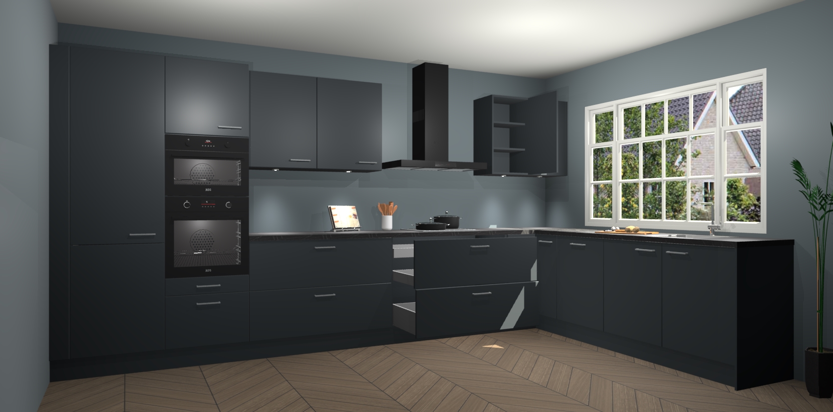 Kom dichtbij de perfecte keuken van uw dromen met de onyxgrijze keuken Graz. Met een prachtige houtlook en eigentijds ontwerp, straalt deze keuken warmte en sfeer uit. Of u nu liefhebber bent van traditionele of moderne stijlen, er is genoeg ruimte om aan al uw behoeften te voldoen.