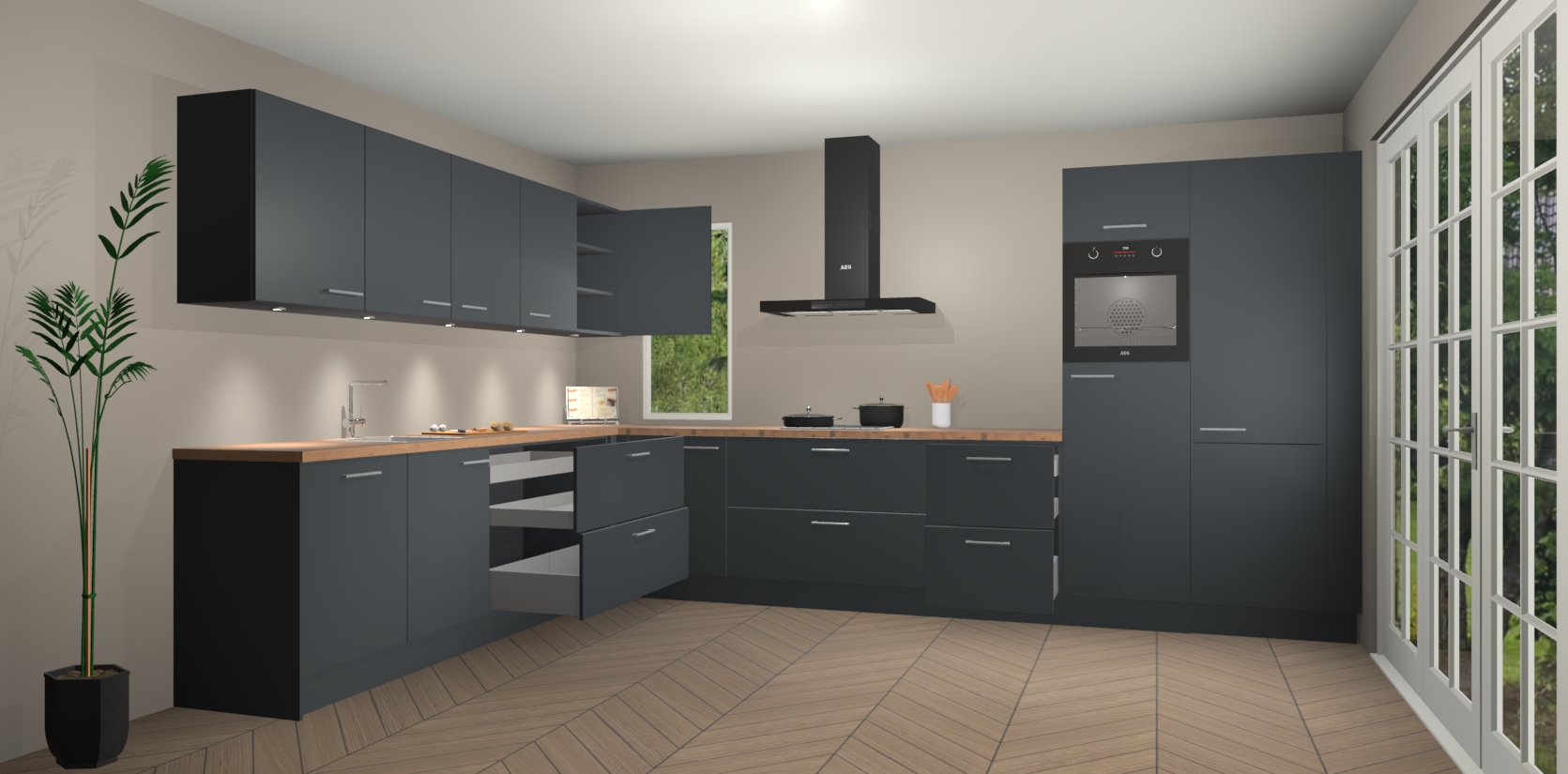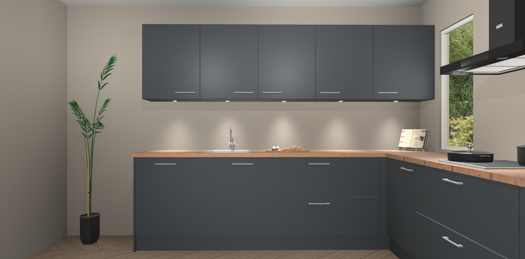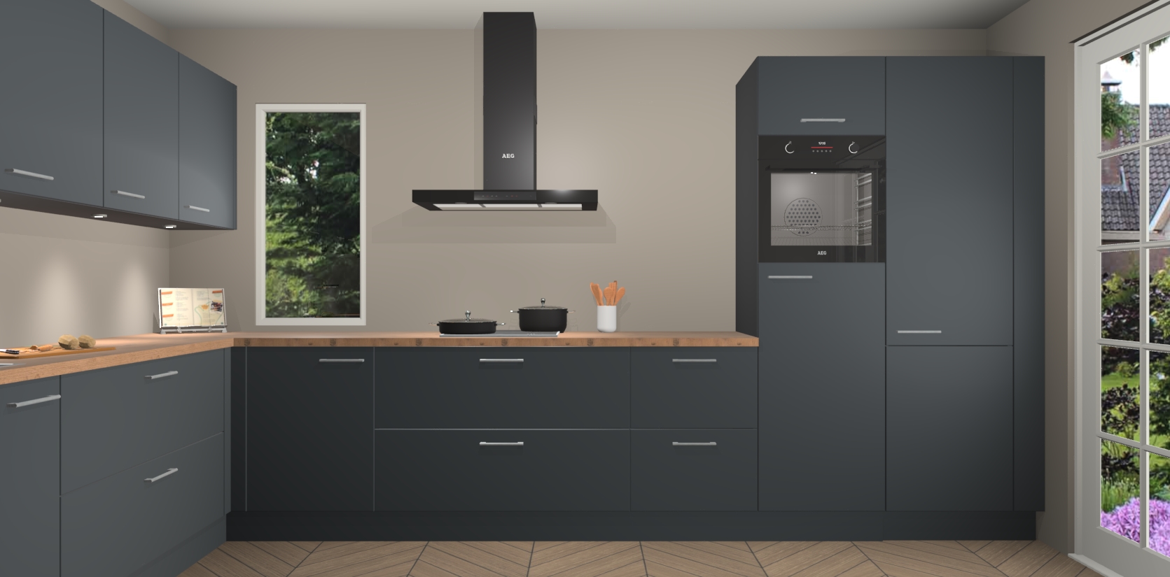 Heeft u nog apparatuur nodig? Geen probleem: de onyxgrijze keuken Harare bevat vijf ingebouwde apparaten - een oven, inductiekookplaat, afzuigkap, vaatwasser en koelkast - die gemakkelijk kunnen worden bijgewerkt naar AEG na bestelling. En als dat nog niet genoeg is; onze kasten worden pre-geassembleerd geleverd en zijn verkrijgbaar tegen een vastgeroeste lage prijs! U hoeft nooit meer te zoeken naar goede kwaliteit en service want onze producten hebben echt Duitse kwaliteit.