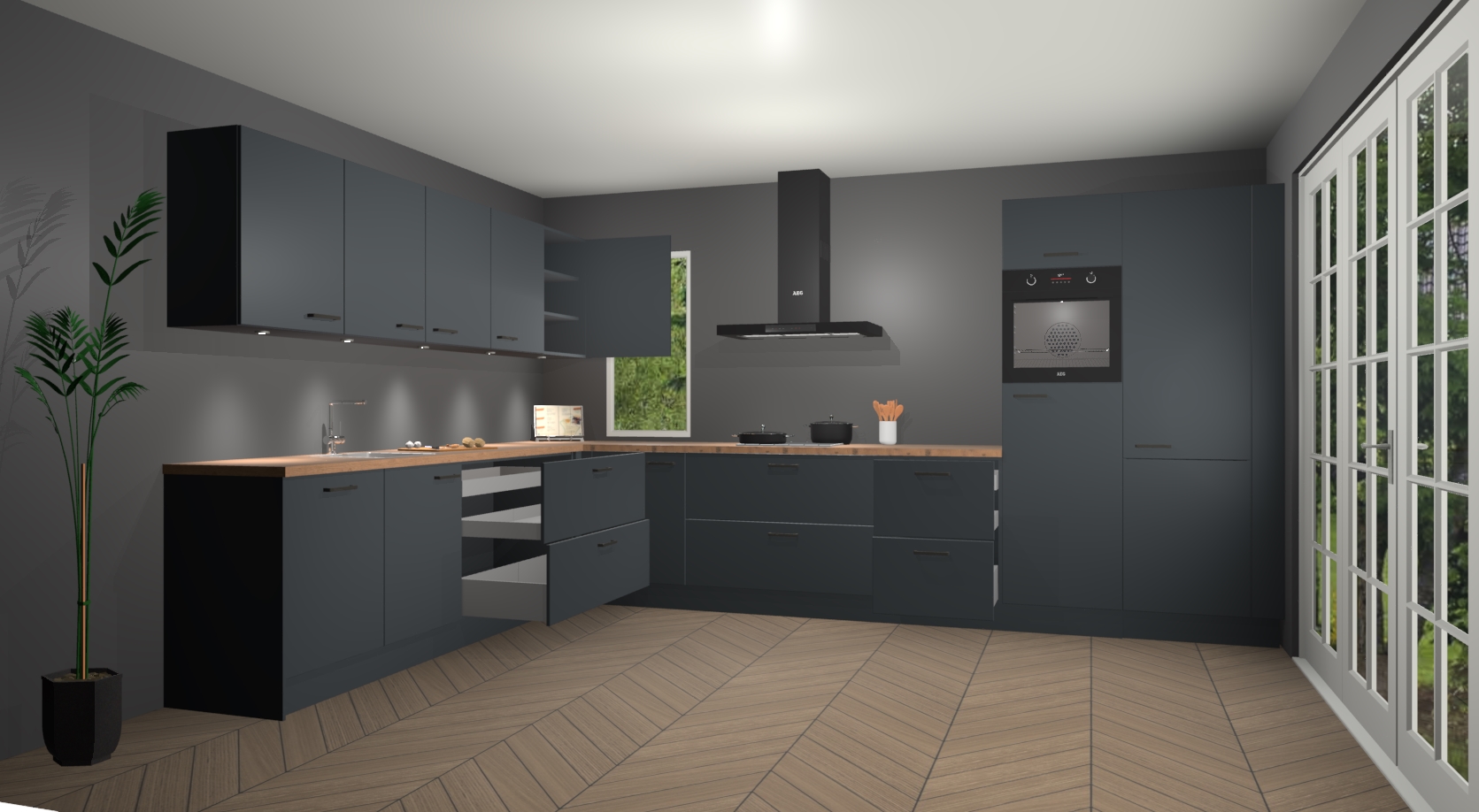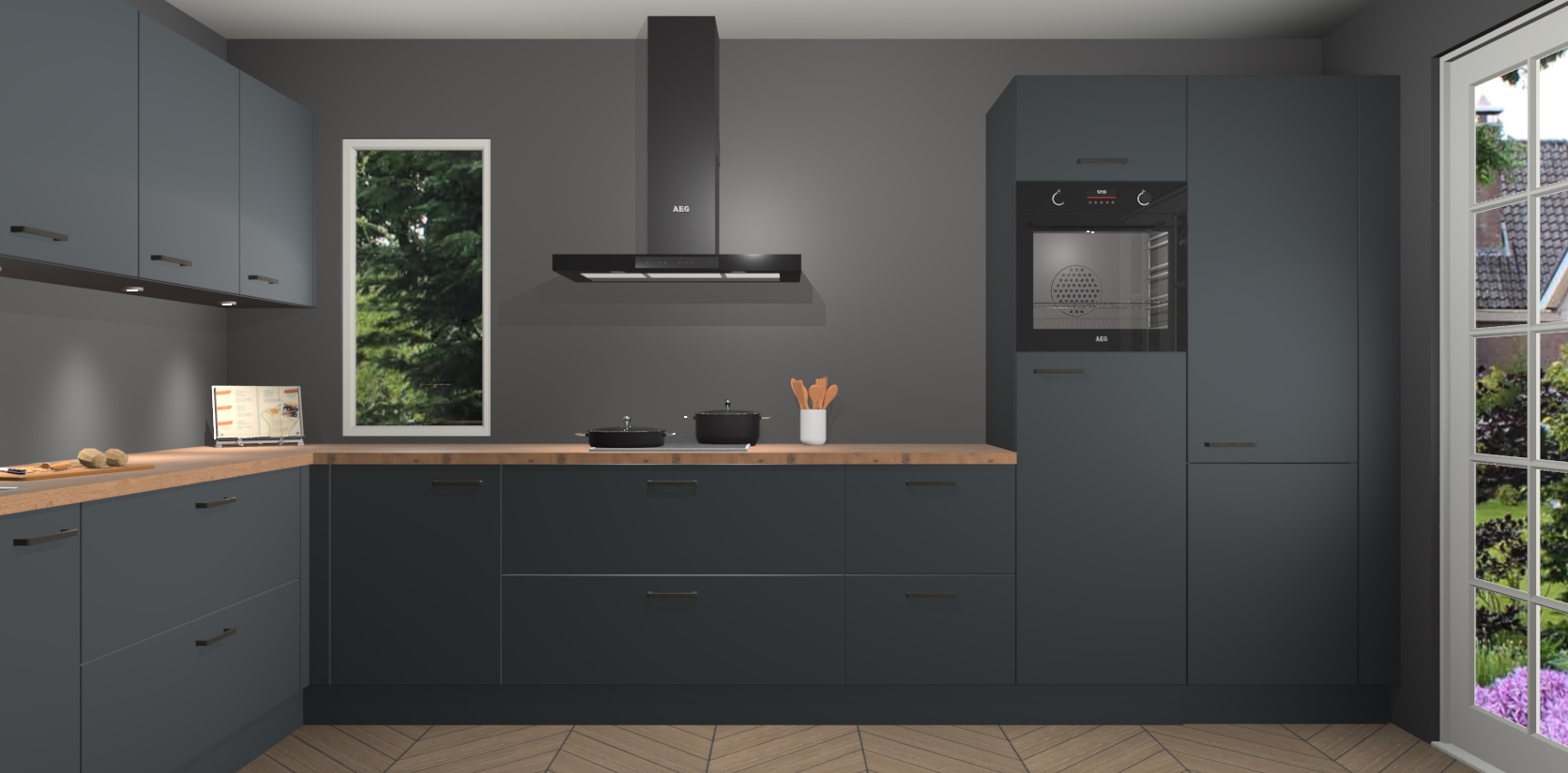 Heeft u nog apparatuur nodig? Geen probleem: de onyxgrijze keuken Harare bevat vijf ingebouwde apparaten - een oven, inductiekookplaat, afzuigkap, vaatwasser en koelkast - die gemakkelijk kunnen worden bijgewerkt naar AEG na bestelling. En als dat nog niet genoeg is; onze kasten worden pre-geassembleerd geleverd en zijn verkrijgbaar tegen een vastgeroeste lage prijs! U hoeft nooit meer te zoeken naar goede kwaliteit en service want onze producten hebben echt Duitse kwaliteit.