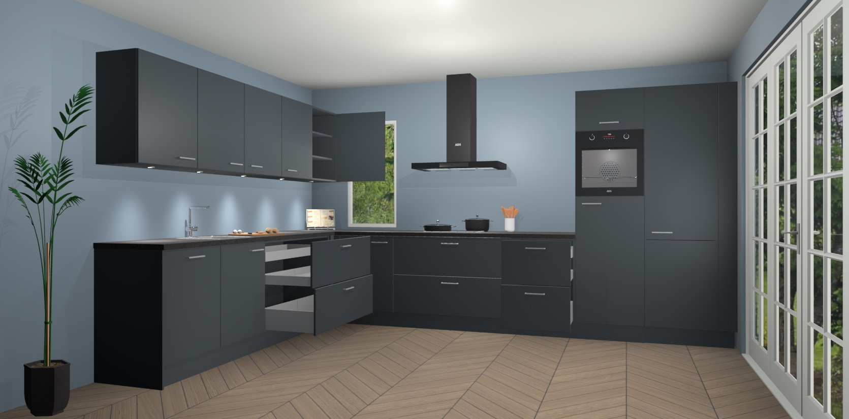 Heeft u nog apparatuur nodig? Geen probleem: de onyxgrijze keuken Harare bevat vijf ingebouwde apparaten - een oven, inductiekookplaat, afzuigkap, vaatwasser en koelkast - die gemakkelijk kunnen worden bijgewerkt naar AEG na bestelling. En als dat nog niet genoeg is; onze kasten worden pre-geassembleerd geleverd en zijn verkrijgbaar tegen een vastgeroeste lage prijs! U hoeft nooit meer te zoeken naar goede kwaliteit en service want onze producten hebben echt Duitse kwaliteit.