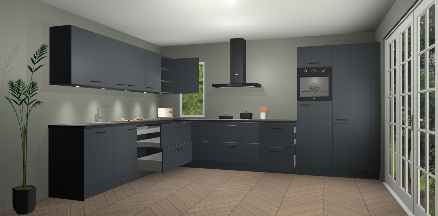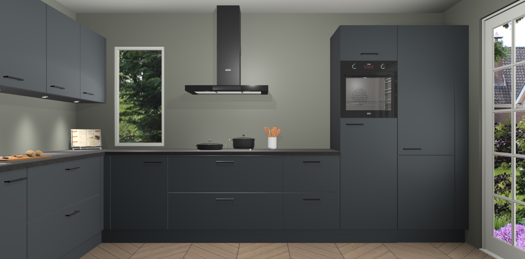 Heeft u nog apparatuur nodig? Geen probleem: de onyxgrijze keuken Harare bevat vijf ingebouwde apparaten - een oven, inductiekookplaat, afzuigkap, vaatwasser en koelkast - die gemakkelijk kunnen worden bijgewerkt naar AEG na bestelling. En als dat nog niet genoeg is; onze kasten worden pre-geassembleerd geleverd en zijn verkrijgbaar tegen een vastgeroeste lage prijs! U hoeft nooit meer te zoeken naar goede kwaliteit en service want onze producten hebben echt Duitse kwaliteit.