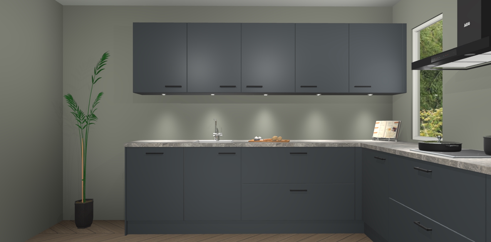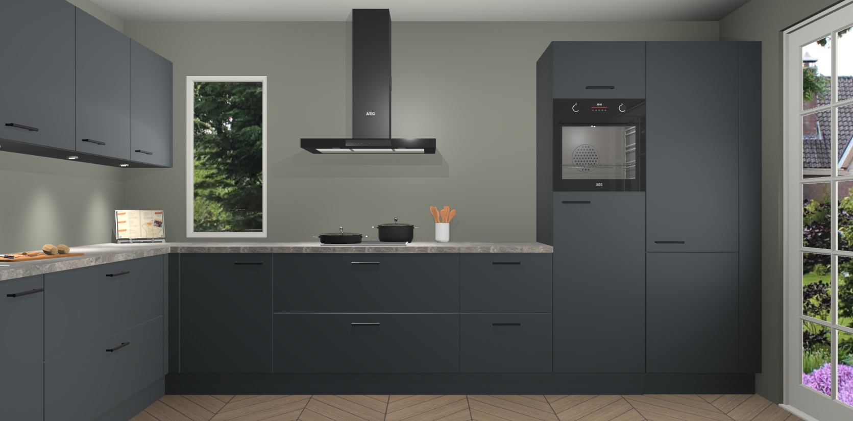 Heeft u nog apparatuur nodig? Geen probleem: de onyxgrijze keuken Harare bevat vijf ingebouwde apparaten - een oven, inductiekookplaat, afzuigkap, vaatwasser en koelkast - die gemakkelijk kunnen worden bijgewerkt naar AEG na bestelling. En als dat nog niet genoeg is; onze kasten worden pre-geassembleerd geleverd en zijn verkrijgbaar tegen een vastgeroeste lage prijs! U hoeft nooit meer te zoeken naar goede kwaliteit en service want onze producten hebben echt Duitse kwaliteit.