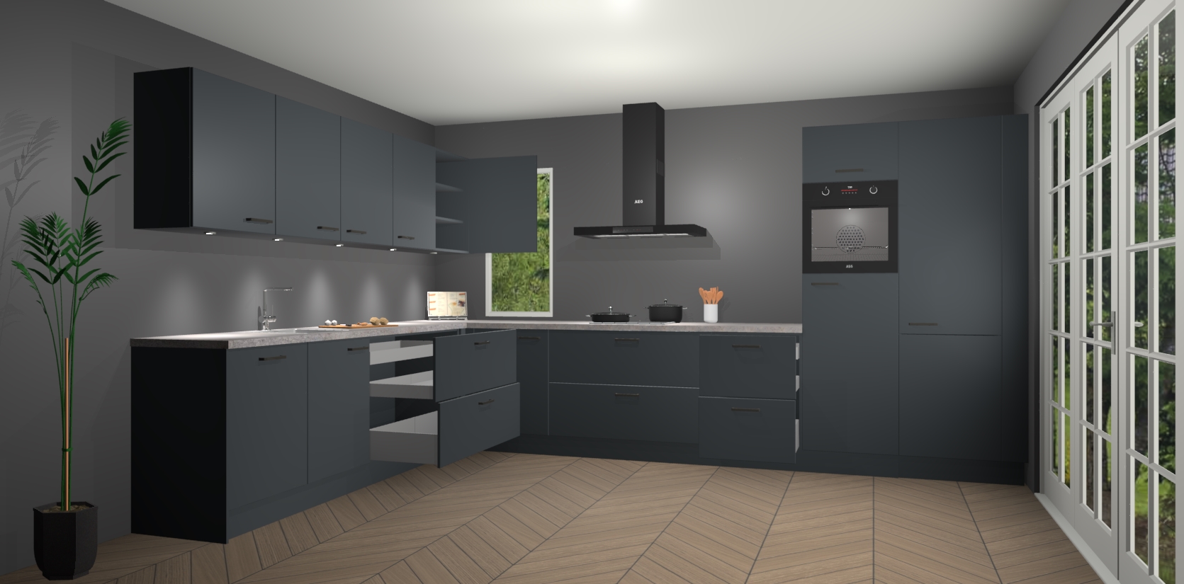 Heeft u nog apparatuur nodig? Geen probleem: de onyxgrijze keuken Harare bevat vijf ingebouwde apparaten - een oven, inductiekookplaat, afzuigkap, vaatwasser en koelkast - die gemakkelijk kunnen worden bijgewerkt naar AEG na bestelling. En als dat nog niet genoeg is; onze kasten worden pre-geassembleerd geleverd en zijn verkrijgbaar tegen een vastgeroeste lage prijs! U hoeft nooit meer te zoeken naar goede kwaliteit en service want onze producten hebben echt Duitse kwaliteit.
