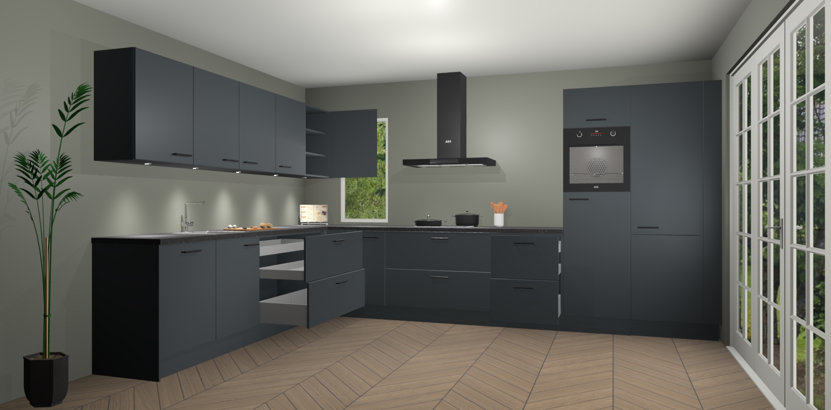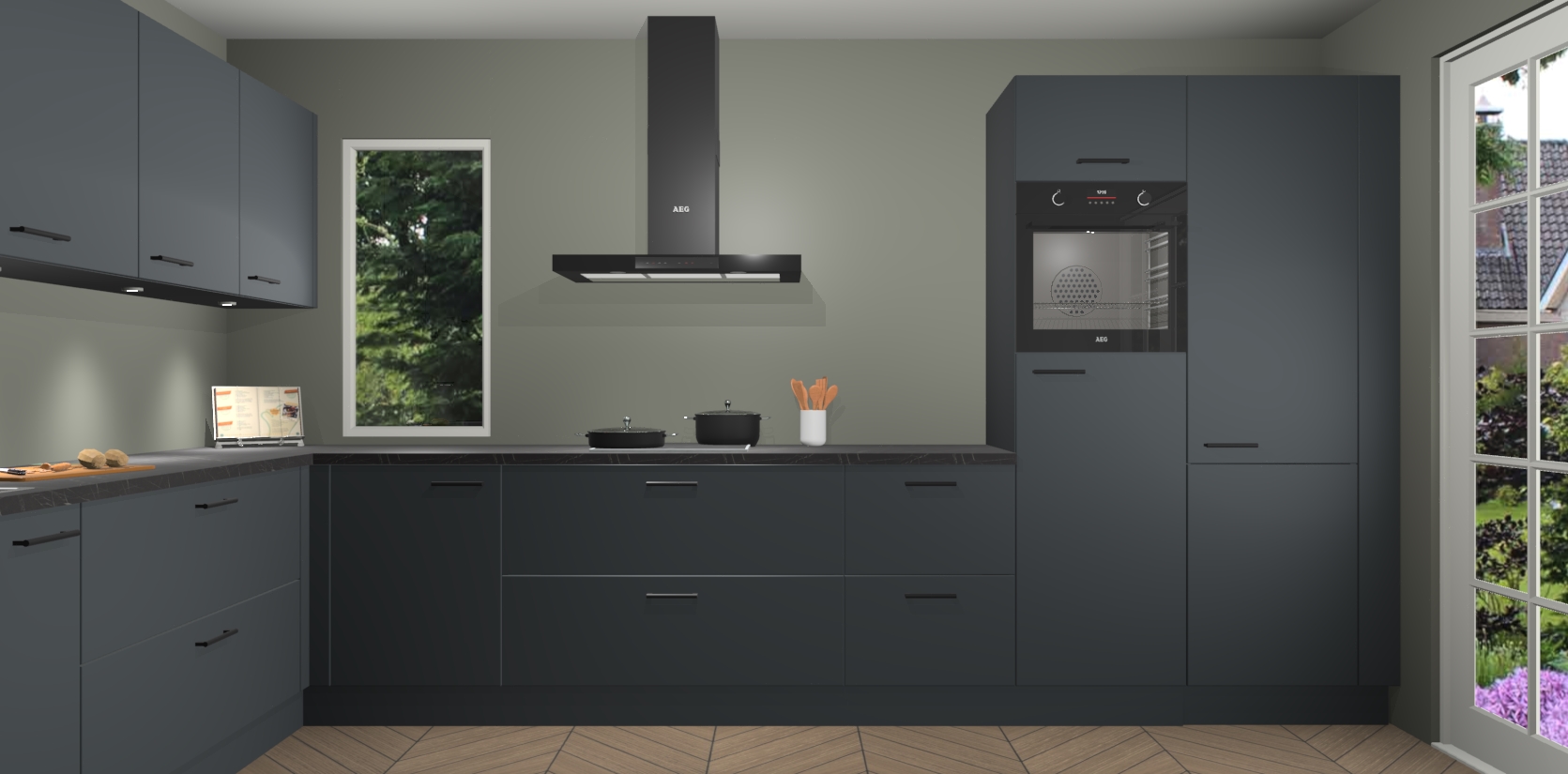 Heeft u nog apparatuur nodig? Geen probleem: de onyxgrijze keuken Harare bevat vijf ingebouwde apparaten - een oven, inductiekookplaat, afzuigkap, vaatwasser en koelkast - die gemakkelijk kunnen worden bijgewerkt naar AEG na bestelling. En als dat nog niet genoeg is; onze kasten worden pre-geassembleerd geleverd en zijn verkrijgbaar tegen een vastgeroeste lage prijs! U hoeft nooit meer te zoeken naar goede kwaliteit en service want onze producten hebben echt Duitse kwaliteit.