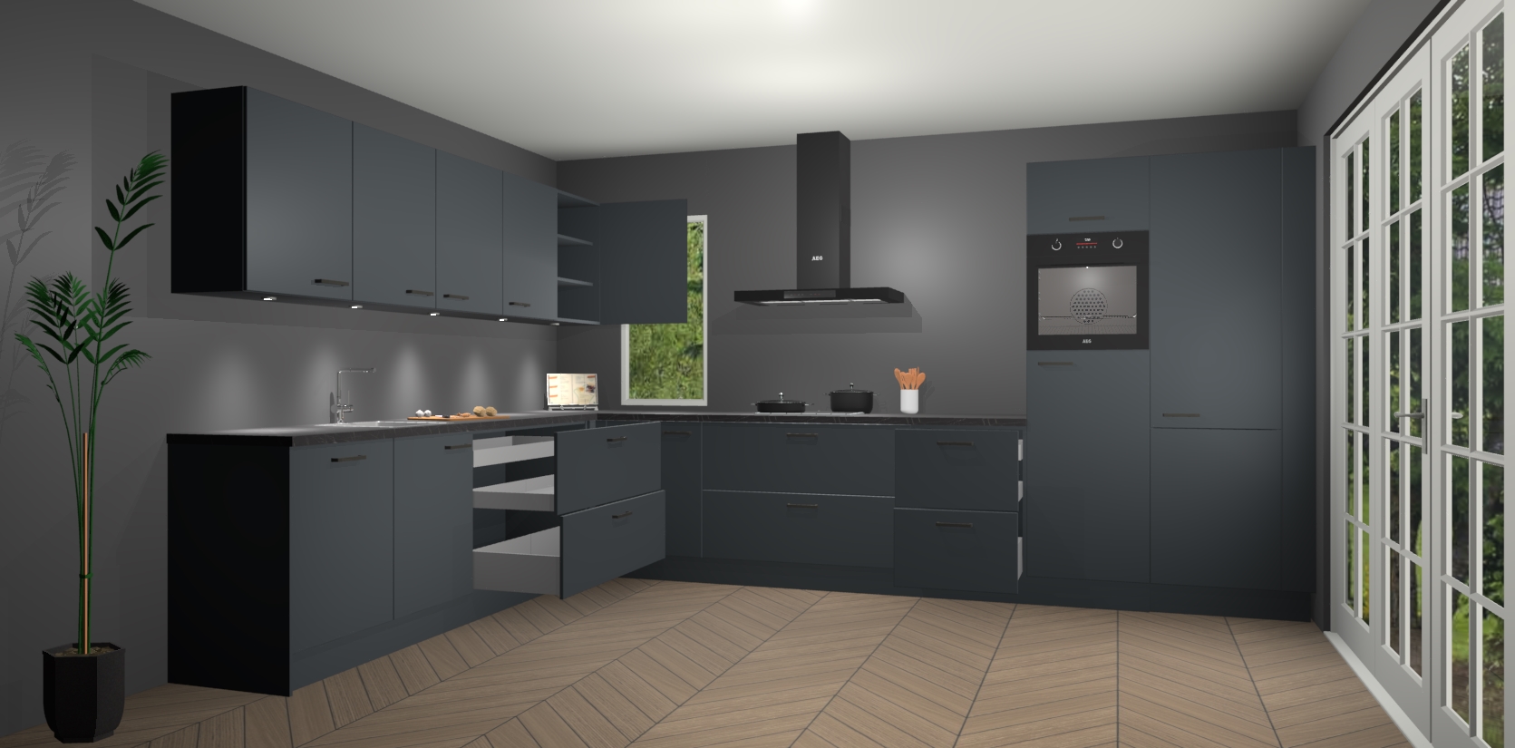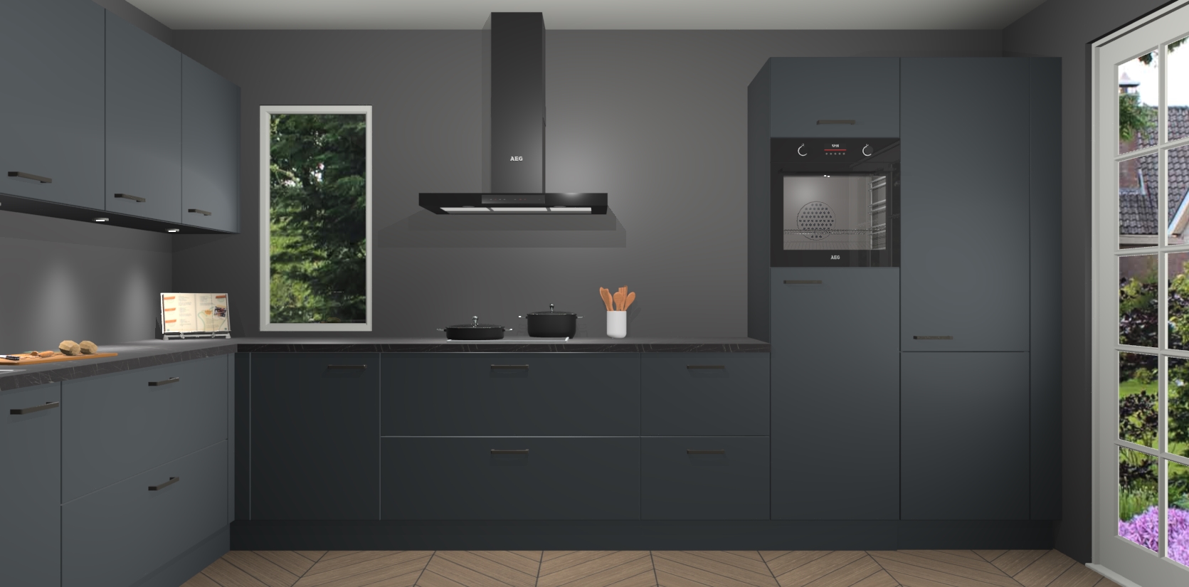 Heeft u nog apparatuur nodig? Geen probleem: de onyxgrijze keuken Harare bevat vijf ingebouwde apparaten - een oven, inductiekookplaat, afzuigkap, vaatwasser en koelkast - die gemakkelijk kunnen worden bijgewerkt naar AEG na bestelling. En als dat nog niet genoeg is; onze kasten worden pre-geassembleerd geleverd en zijn verkrijgbaar tegen een vastgeroeste lage prijs! U hoeft nooit meer te zoeken naar goede kwaliteit en service want onze producten hebben echt Duitse kwaliteit.