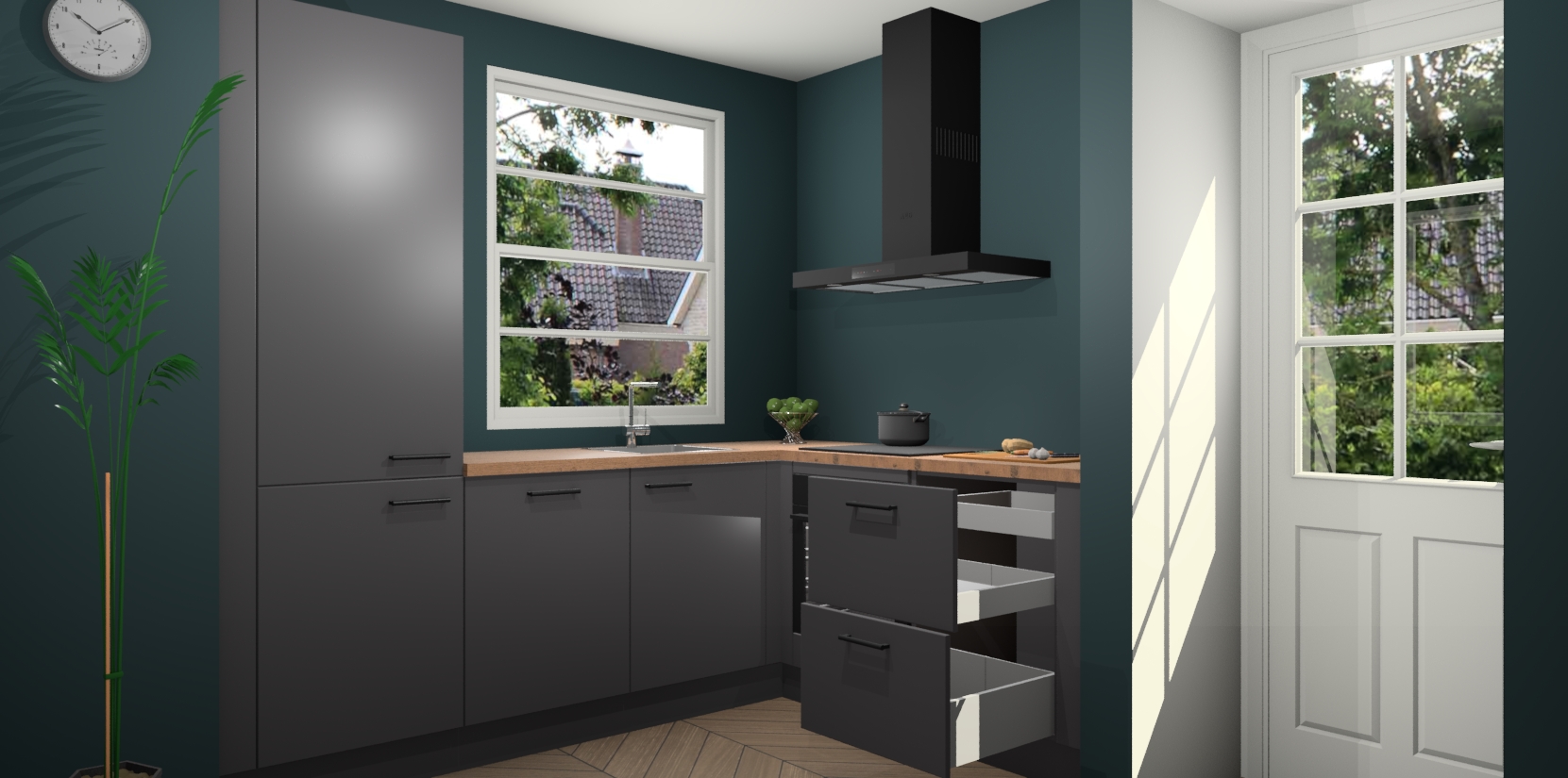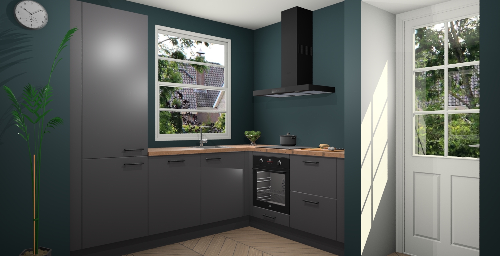 Wilt u een echte aanwinst voor uw keuken, maar bent u op zoek naar iets specialers dan de standaardkeukens? Kies dan voor de Onyxgrijze keuken Harbin! Dit prachtige hoekkeukenontwerp geeft u alle ruimte om optimaal te genieten van heerlijk koken. Het uitmuntende afwerkingsniveau, de fraaie houtstructuur en de sfeervolle zwarte grepen maken van de Onyxgrijze keuken Harbin de perfecte keuze voor zowel enthousiaste thuiskoks als design-minded interieurliefhebbers.