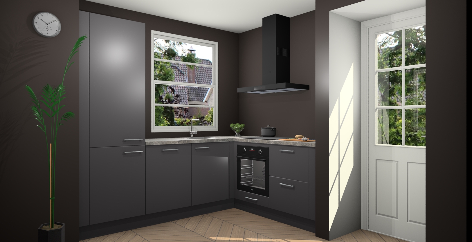 Plus: de Onyxgrijze keuken Harbin is kant en klaar voorzien van 5 inbouwapparaten. U krijgt er direct bij: een oven, inductiekookplaat, afzuigkap, vaatwasser én koelkast. En als dat nog niet luxueus genoeg is, heeft u nog de mogelijkheid om de apparaten te upgraden naar AEG of om uw oven te vervangen door een combimagnetron. Ook fijn van voordeel zijn de softclosing-deuren die ervoor zorgen dat u geen geluid hoeft te maken wanneer u weer uw koelkastdeurtjes dichtdoet!