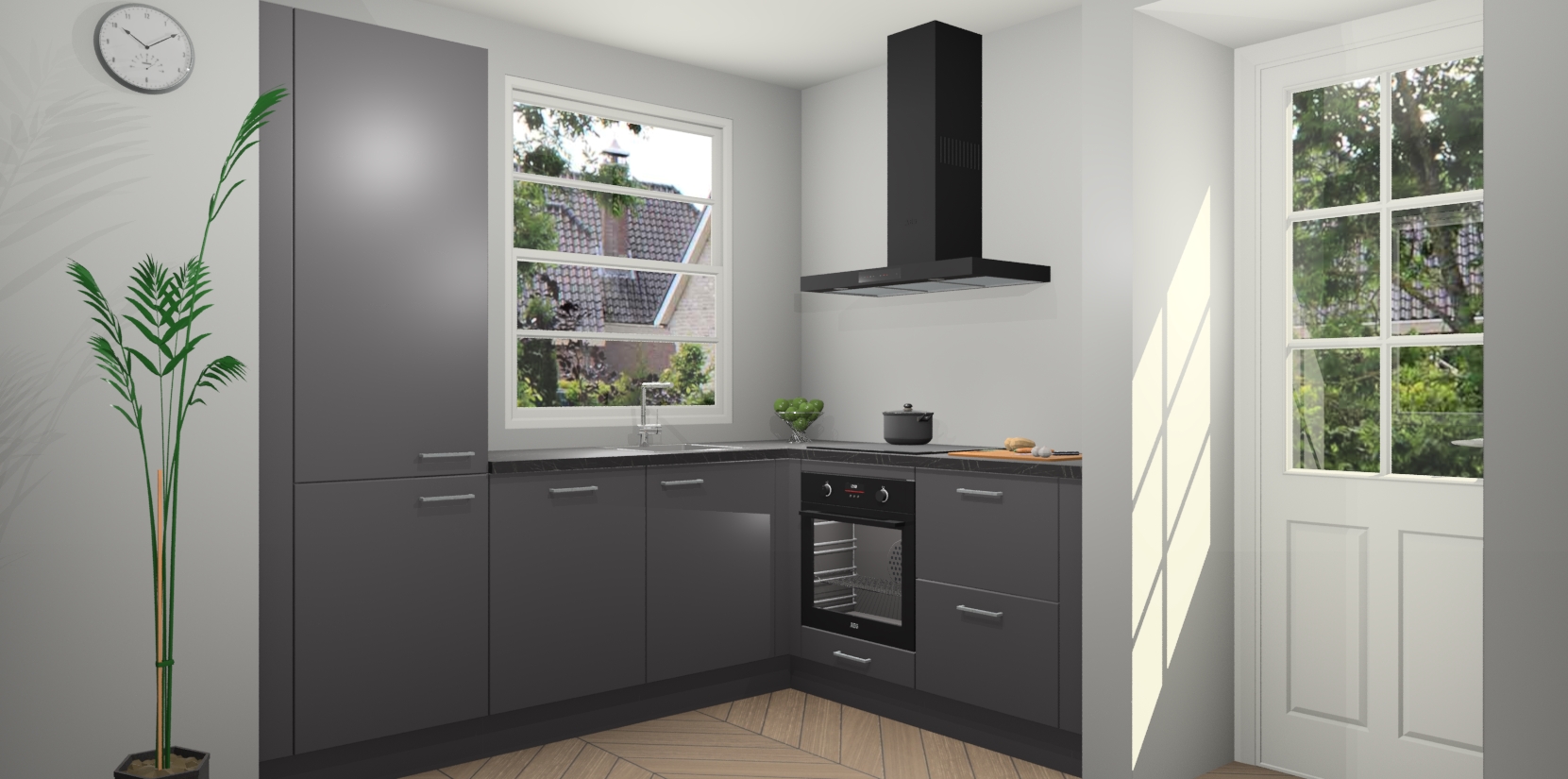 Plus: de Onyxgrijze keuken Harbin is kant en klaar voorzien van 5 inbouwapparaten. U krijgt er direct bij: een oven, inductiekookplaat, afzuigkap, vaatwasser én koelkast. En als dat nog niet luxueus genoeg is, heeft u nog de mogelijkheid om de apparaten te upgraden naar AEG of om uw oven te vervangen door een combimagnetron. Ook fijn van voordeel zijn de softclosing-deuren die ervoor zorgen dat u geen geluid hoeft te maken wanneer u weer uw koelkastdeurtjes dichtdoet!