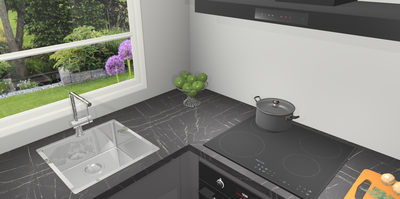 Wilt u een echte aanwinst voor uw keuken, maar bent u op zoek naar iets specialers dan de standaardkeukens? Kies dan voor de Onyxgrijze keuken Harbin! Dit prachtige hoekkeukenontwerp geeft u alle ruimte om optimaal te genieten van heerlijk koken. Het uitmuntende afwerkingsniveau, de fraaie houtstructuur en de sfeervolle zwarte grepen maken van de Onyxgrijze keuken Harbin de perfecte keuze voor zowel enthousiaste thuiskoks als design-minded interieurliefhebbers.