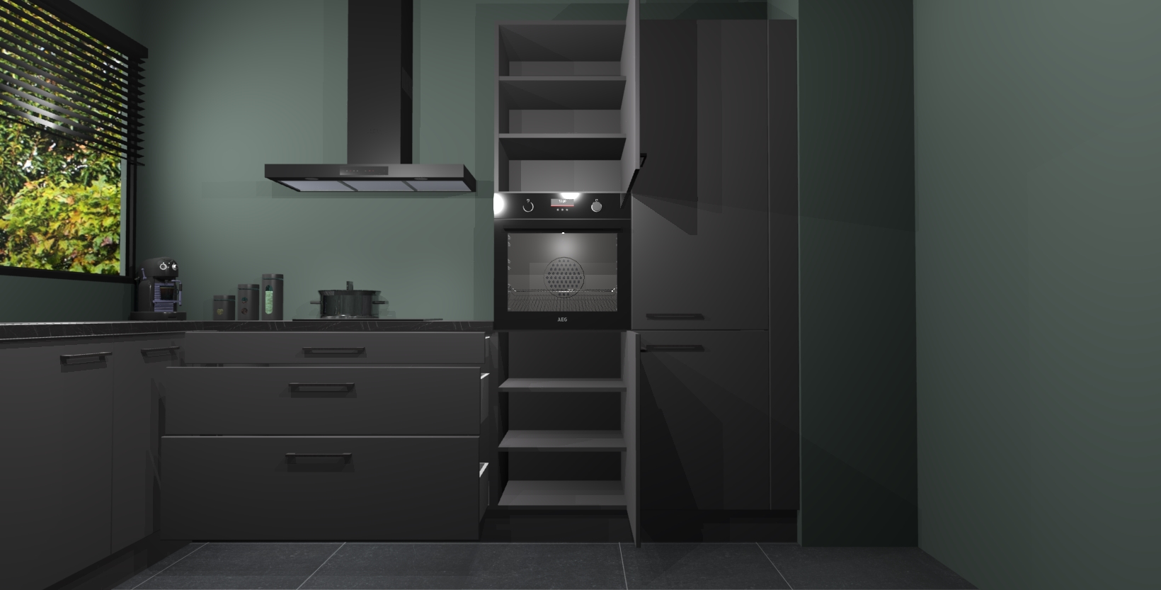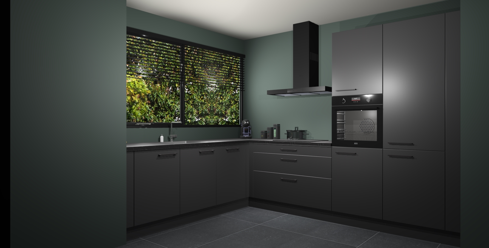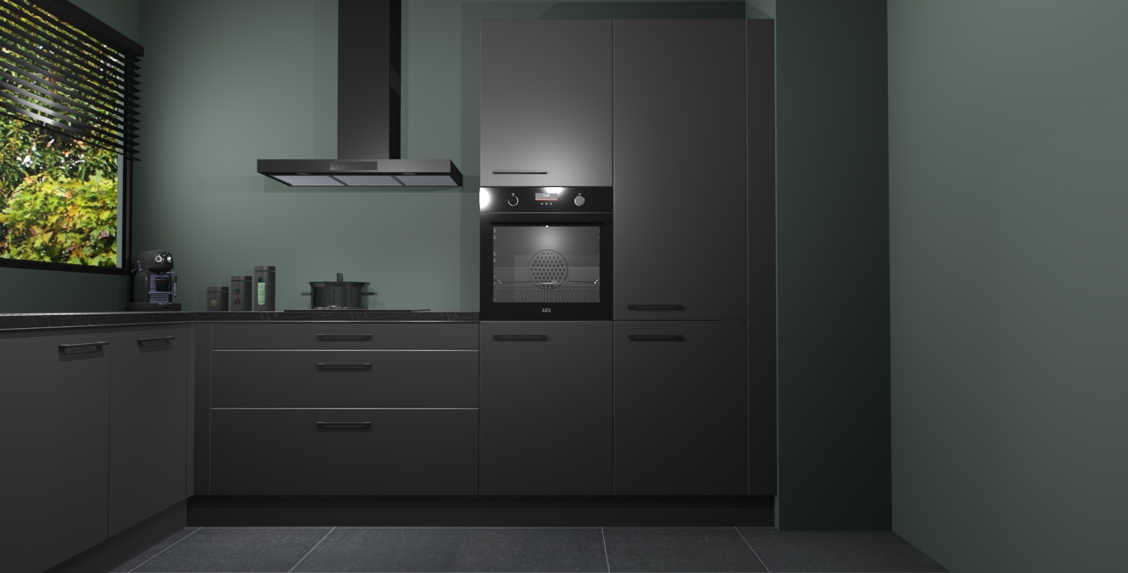 Met een modern, tijdloos design en ruime opslagruimte, zult u zich in no-time thuis voelen in uw nieuwe keuken. Uw leven wordt eenvoudiger met de soft-close deuren die voor het ultieme stille comfort zorgen - geen geluid dat u stoort terwijl u kookt. Ook is de keuken voorzien van 5 ingebouwde apparaten: een oven, inductie kookplaat, afzuigkap, vaatwasser en koelkast. Deze kunnen gemakkelijk na bestelling worden bijgewerkt naar AEG - waardoor uw luxe ervaring compleet is.