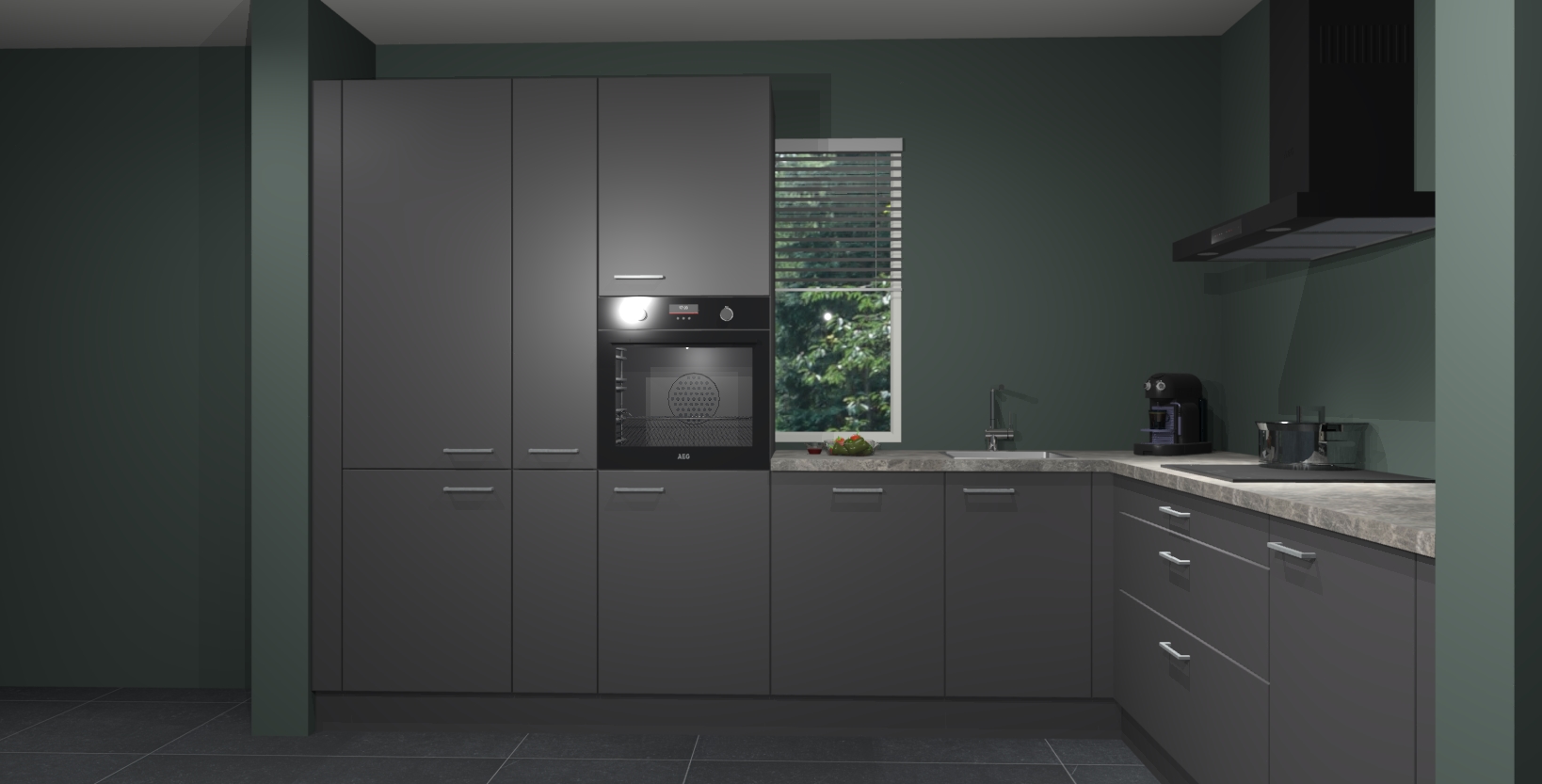 Met een modern, tijdloos design en ruime opslagruimte, zult u zich in no-time thuis voelen in uw nieuwe keuken. Uw leven wordt eenvoudiger met de soft-close deuren die voor het ultieme stille comfort zorgen - geen geluid dat u stoort terwijl u kookt. Ook is de keuken voorzien van 5 ingebouwde apparaten: een oven, inductie kookplaat, afzuigkap, vaatwasser en koelkast. Deze kunnen gemakkelijk na bestelling worden bijgewerkt naar AEG - waardoor uw luxe ervaring compleet is.