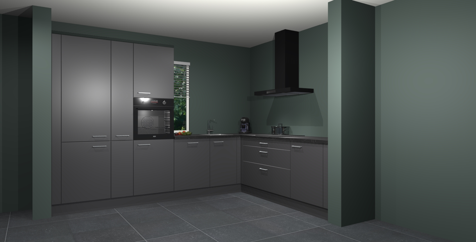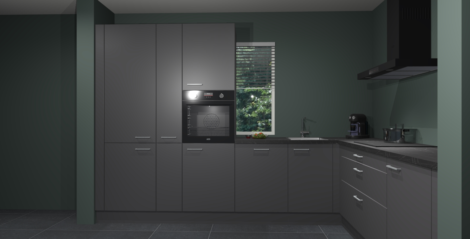 Met een modern, tijdloos design en ruime opslagruimte, zult u zich in no-time thuis voelen in uw nieuwe keuken. Uw leven wordt eenvoudiger met de soft-close deuren die voor het ultieme stille comfort zorgen - geen geluid dat u stoort terwijl u kookt. Ook is de keuken voorzien van 5 ingebouwde apparaten: een oven, inductie kookplaat, afzuigkap, vaatwasser en koelkast. Deze kunnen gemakkelijk na bestelling worden bijgewerkt naar AEG - waardoor uw luxe ervaring compleet is.