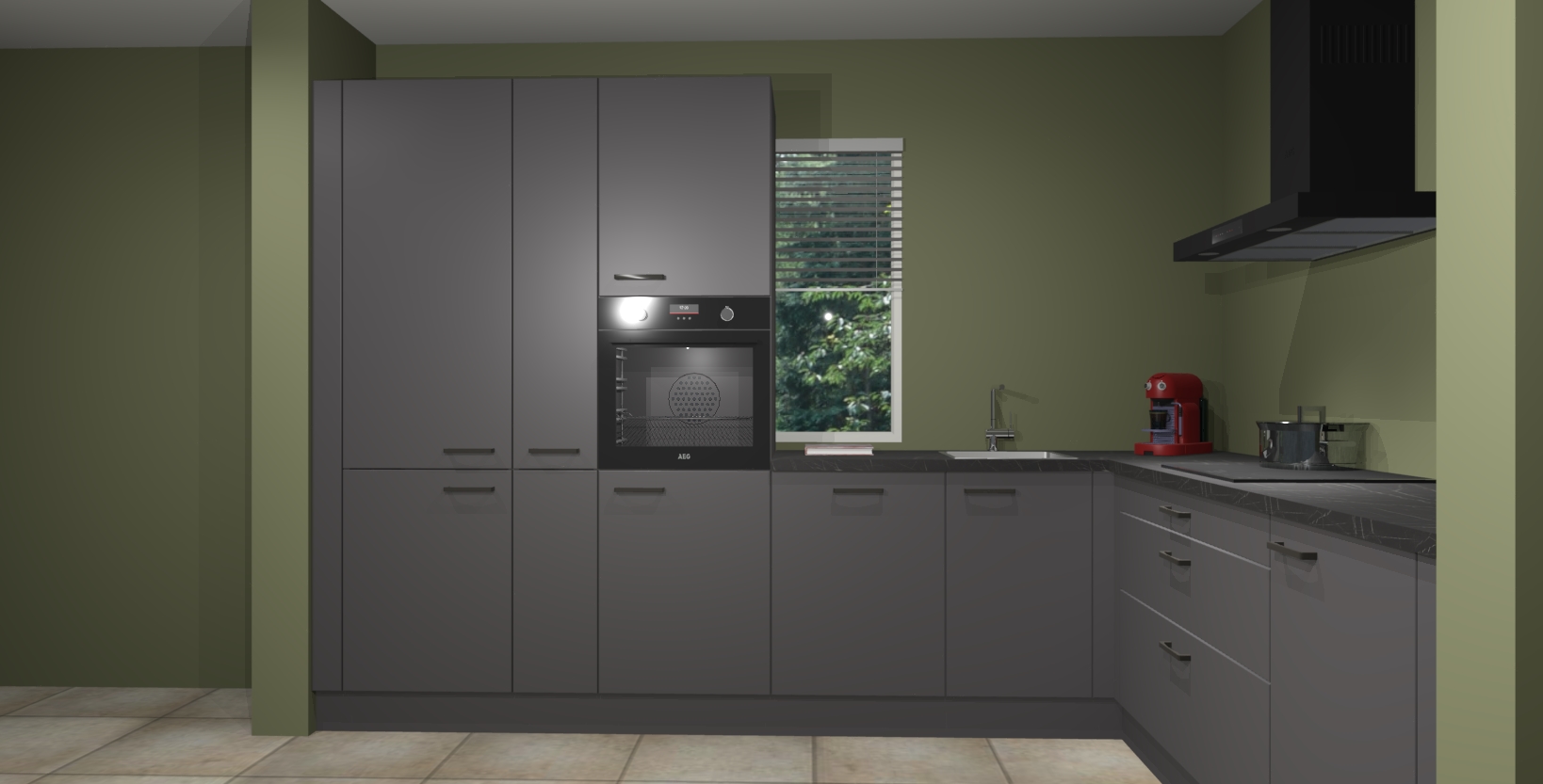 Met een modern, tijdloos design en ruime opslagruimte, zult u zich in no-time thuis voelen in uw nieuwe keuken. Uw leven wordt eenvoudiger met de soft-close deuren die voor het ultieme stille comfort zorgen - geen geluid dat u stoort terwijl u kookt. Ook is de keuken voorzien van 5 ingebouwde apparaten: een oven, inductie kookplaat, afzuigkap, vaatwasser en koelkast. Deze kunnen gemakkelijk na bestelling worden bijgewerkt naar AEG - waardoor uw luxe ervaring compleet is.