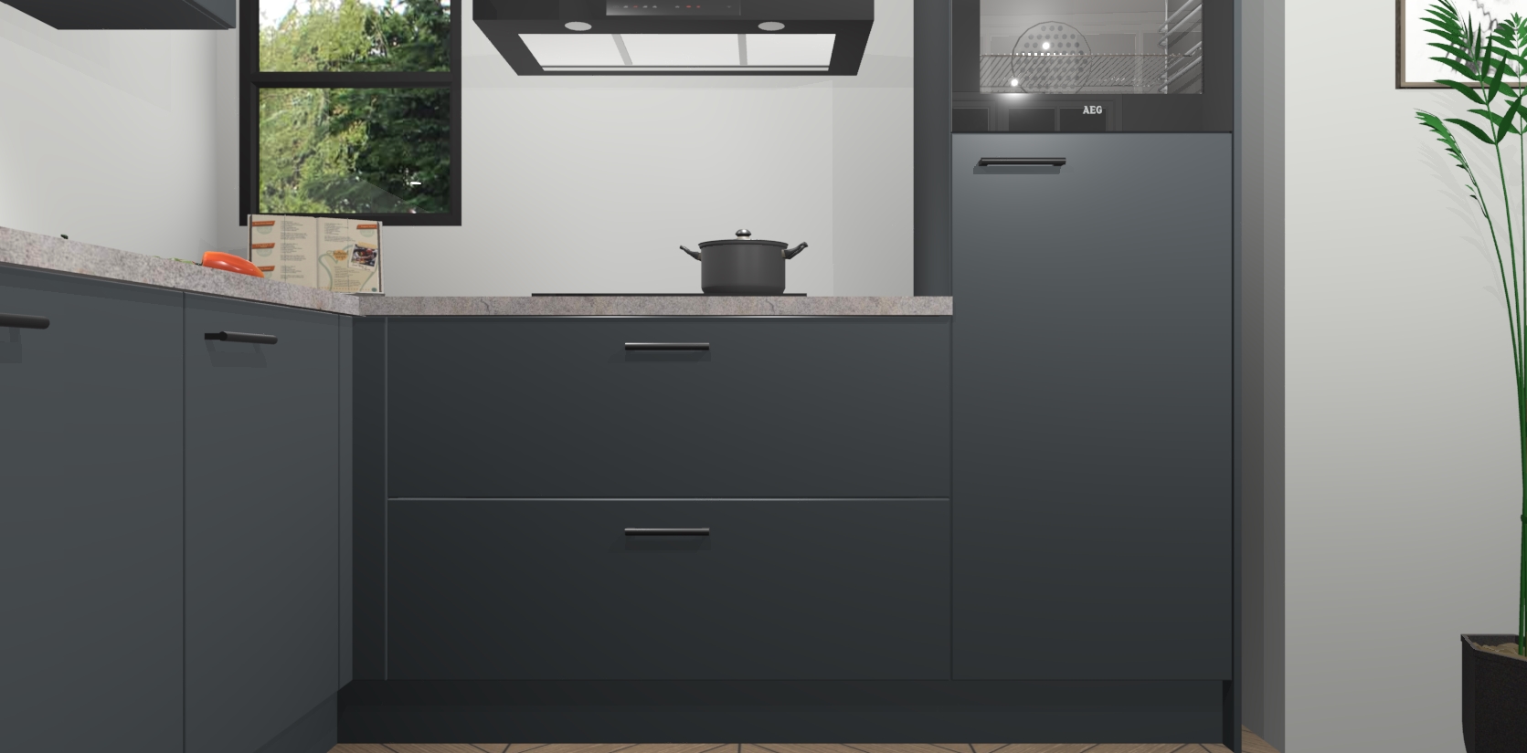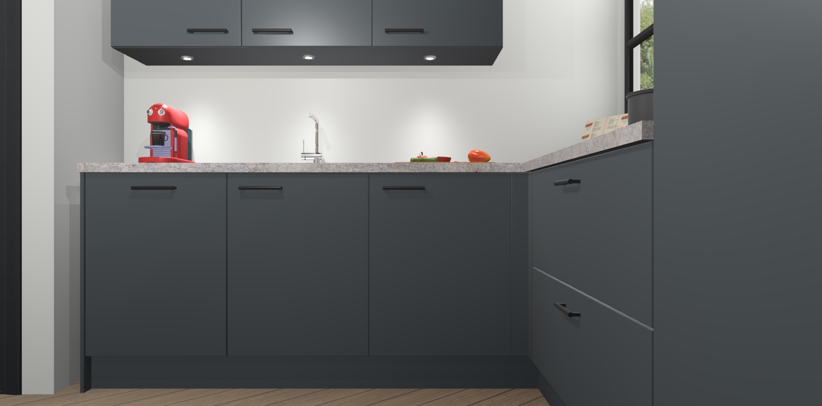 Inclusief plinten, stelpoten en werkblad