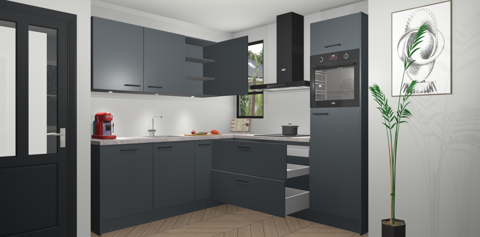Als extra werd de prijs zo laag mogelijk vastgesteld, zonder aan de kwaliteit te raken. Zo heb je gegarandeerde Duitse keukenkwaliteit waarmee je jarenlang plezier beleeft aan het ontwerp. En dat alles wordt gecombineerd met een supersnelle service van maar liefst 7 weken!