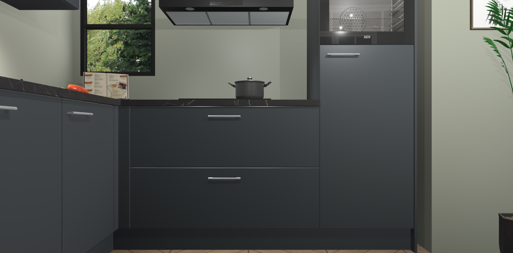 Inclusief plinten, stelpoten en werkblad