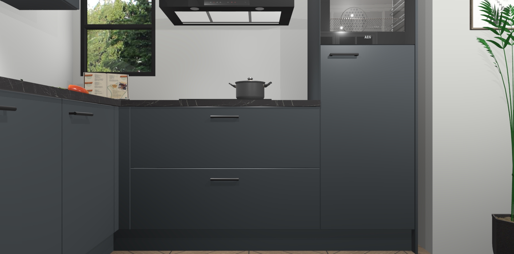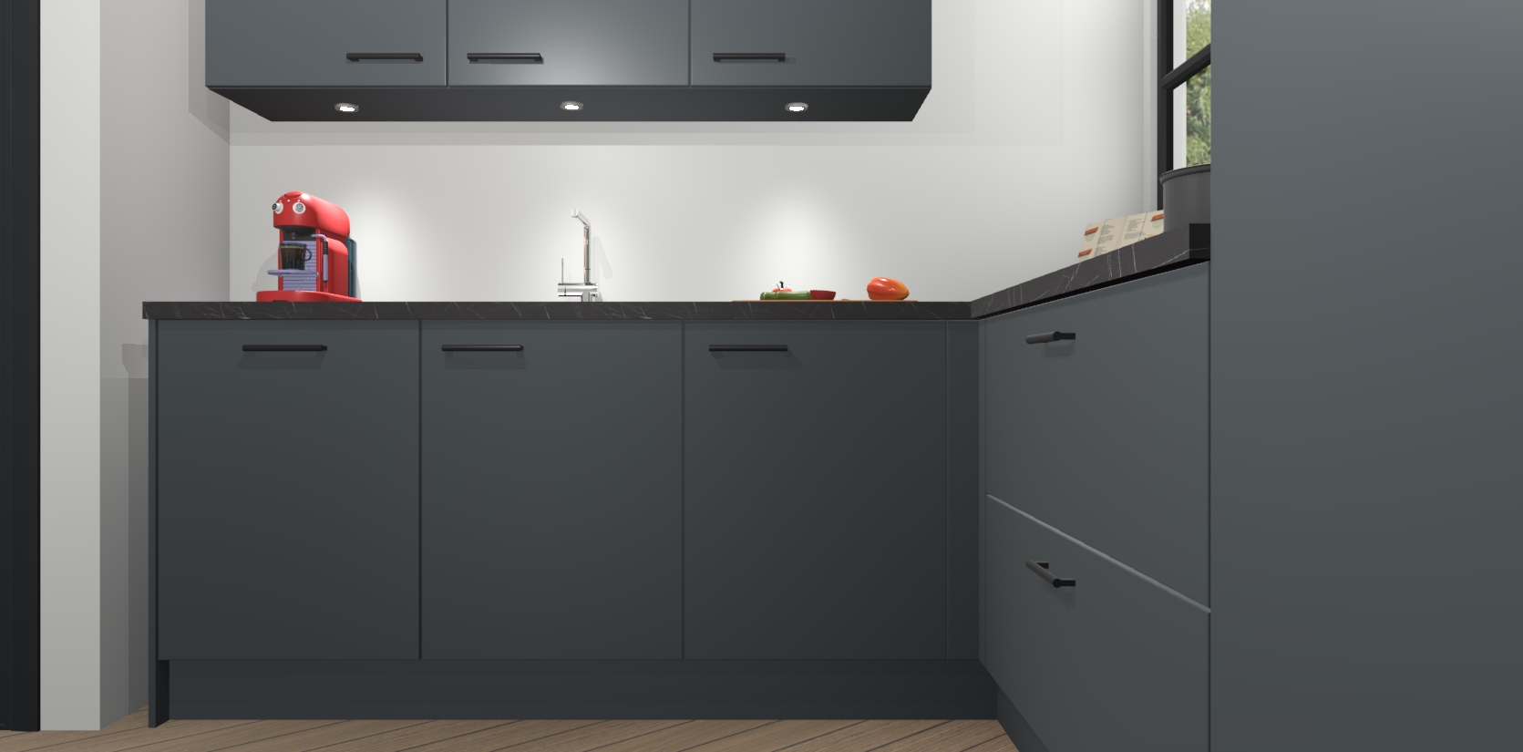 Inclusief plinten, stelpoten en werkblad